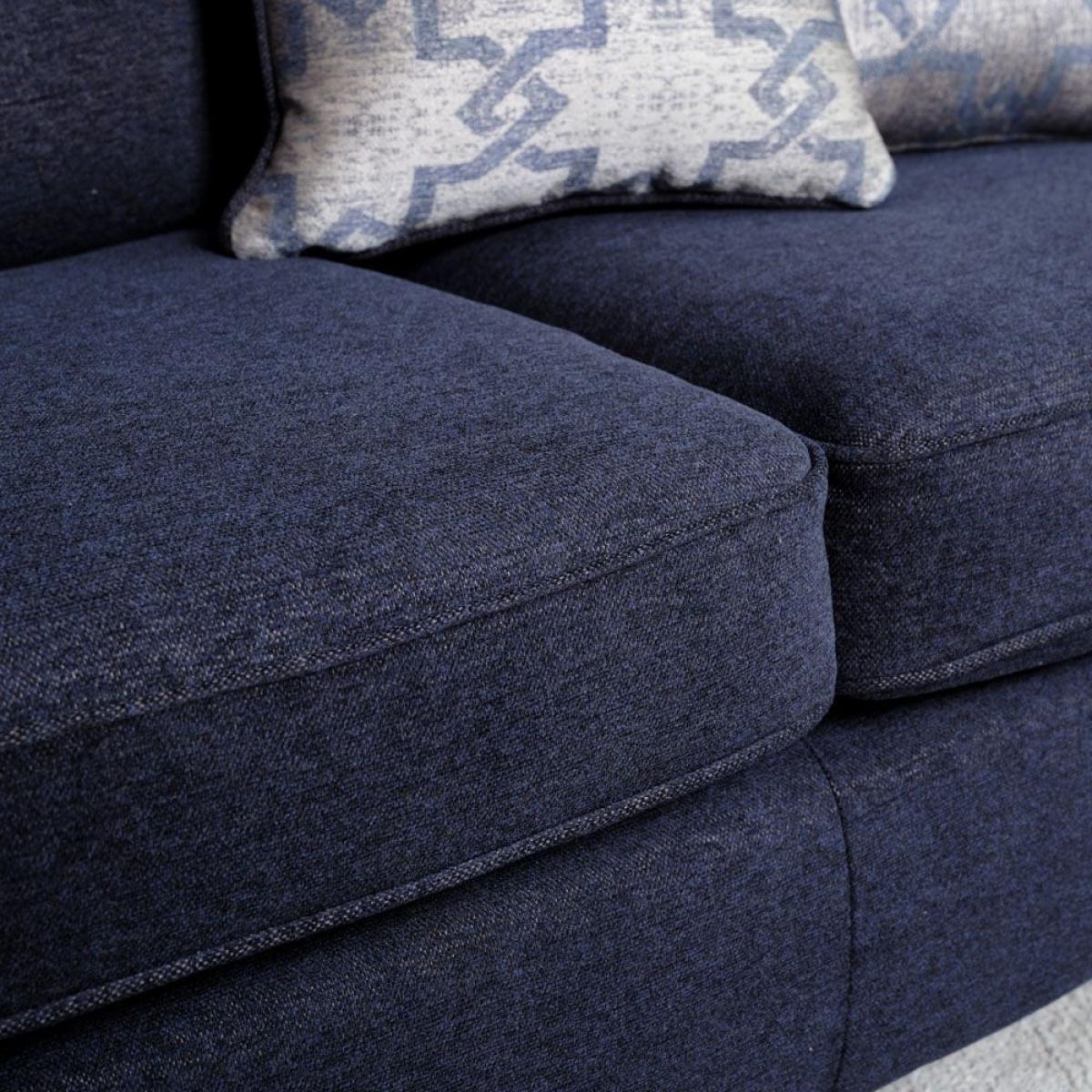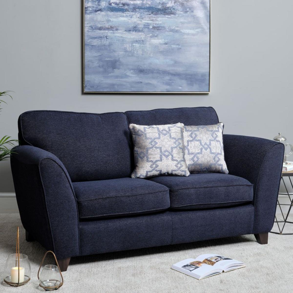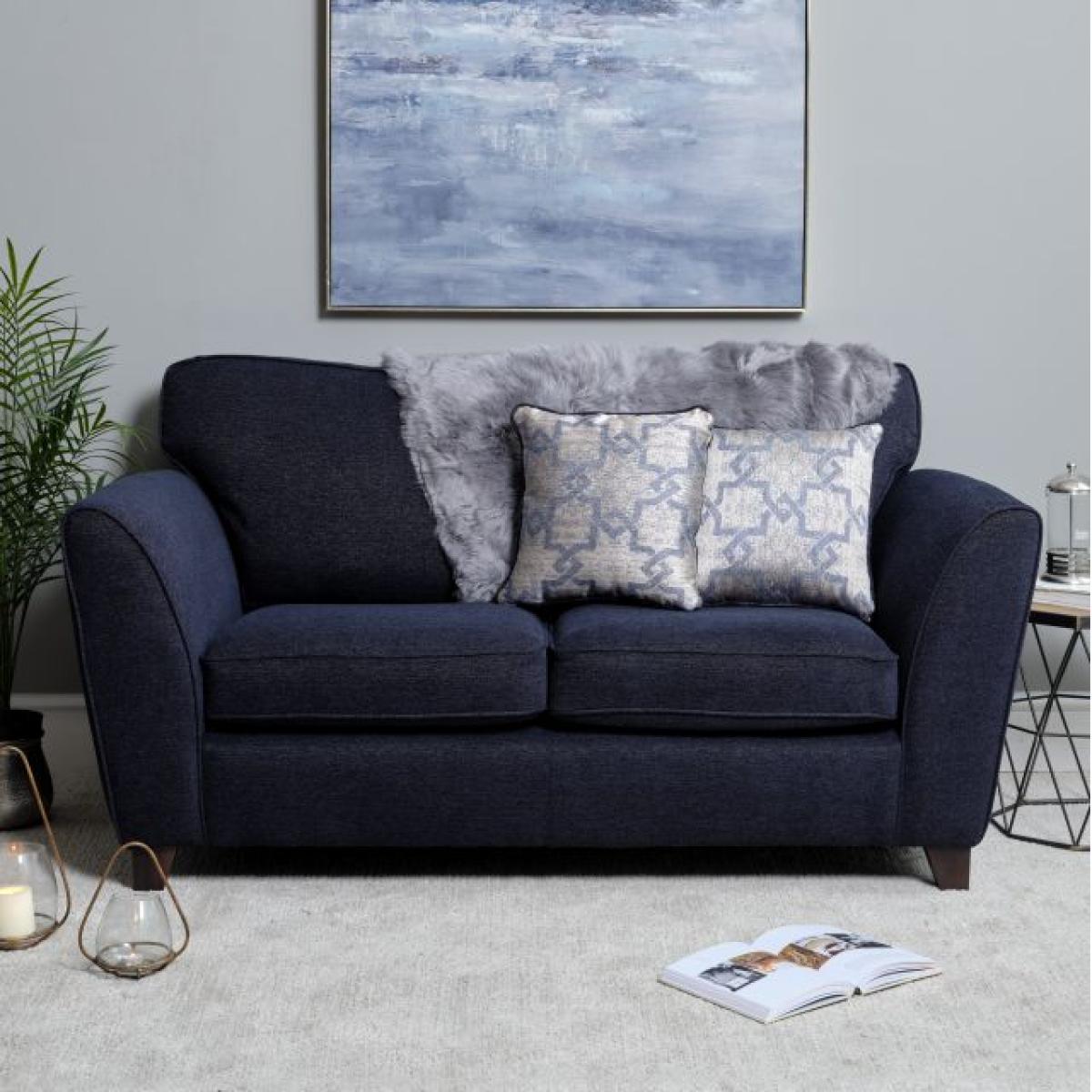 The Cameron 2 Seater sofa would be a trendy addition to any modern living room space. This attractive sofa has contemporary lines with gently angled arms and solid hardwood feet in a dark finish. Sink into the comfort of high-quality foam seat cushions and luxury spiral fibre filled back cushions and relax. Two comfy scatter cushions are included with this sofa.