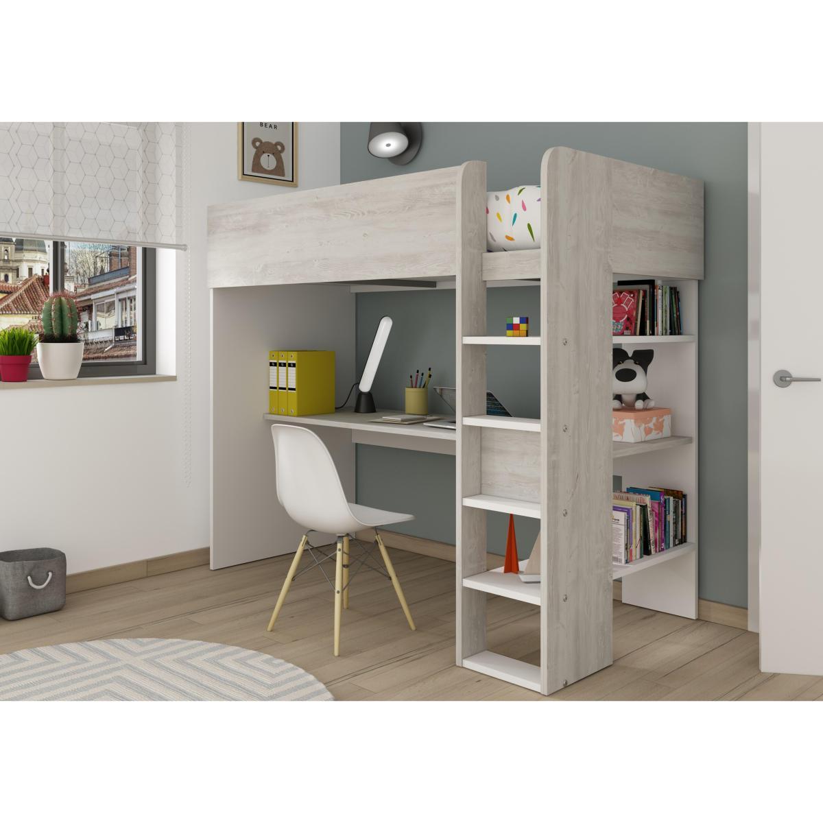 At last, children’s beds that stay stylish right into the teenage years. The Cameron storage beds are cleverly designed, space-saving and have plenty of fresh, Scandinavian appeal.They’re sturdily constructed and fit the range’s European single size mattresses. Clever features include day beds with a pull-out drawer for a second trundle mattress, and desks which hide away when not in use. This fantastic value range of children’s bedroom furniture exceeds British Furniture safety standards. Sleekly designed Scandi style high-sleeper bed with a spacious desk and shelves built in. Ideal for children and teenagers. *This is a self-assembly item*. What you’ll love. Space-saving design. The clean Scandi style suits all ages. Spacious desk, plenty of room for homework. Lots of storage in the integrated shelves. Fresh, white and grey wood effect finish. Exceeds British safety standards for children’s furniture. Fantastic value for money. What you need to know. Fits a European single size mattress (90cm x 200cm), available separately. Heavy duty construction. Melamine finish is scratch-proof and waterproof. Product will be assembled for you on delivery. Part of the versatile Cameron range which also includes mattresses.