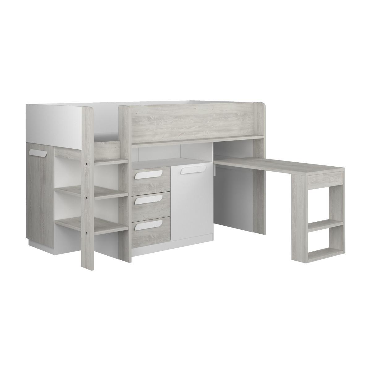 At last, children’s beds that stay stylish right into the teenage years. The Cameron storage beds are cleverly designed, space-saving and have plenty of fresh, Scandinavian appeal. They’re sturdily constructed and fit the range’s European single size mattresses. Clever features include day beds with a pull-out drawer for a second trundle mattress, and desks which hide away when not in use. This fantastic value range of children’s bedroom furniture exceeds British Furniture safety standards. Fresh, sleek Scandi style mid-sleeper bed with ingenious storage built in. Includes a hidden wardrobe and a pull-out desk with integrated bookcase. What you’ll love. Innovative space-saving design. The clean Scandi style suits all ages. Clever hidden wardrobe with hanging rail and shelf. Pull-out desk with integrated bookcase. Lots of storage in drawers, shelves and shelved cupboards. Fresh, white and grey wood effect finish. Exceeds British safety standards for children’s furniture. Fantastic value for money. What you need to know. Fits a European single size mattress (90cm x 200cm), available separately. Heavy duty construction. Melamine finish is scratch-proof and waterproof. Product will be assembled for you on delivery. Part of the versatile Cameron range which also includes mattresses. This furniture requires extra space for assembly. Please allow at least 30cm on top of the product dimensions when measuring up your space.