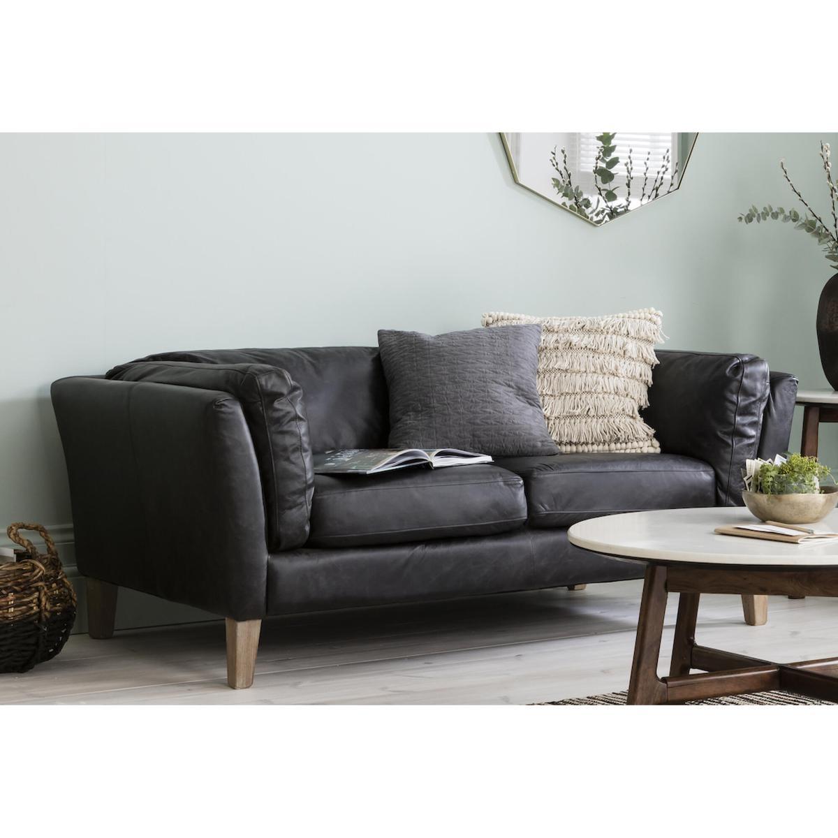 Make room for the Cameron, a sofa designed for the hectic demands of modern life. This contemporary shape speaks luxurious comfort, and it's ready for you to sink into the softness of its cushions. The Cameron is also available in Dark Tan Leather. Featuring a robust solid wood frame and leather upholstery in Black, this is an unmissable living room design that is suitable for a variety of decors and styles.