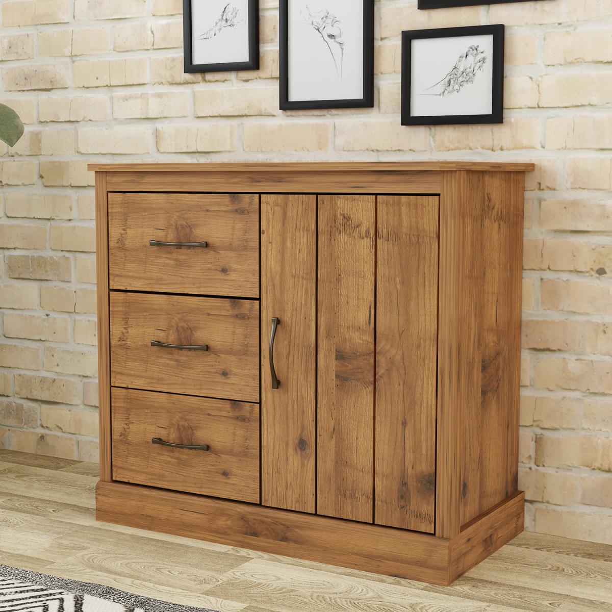 A great storage solution for any living or dining area, this Camford Compact Sideboard helps to keep your home looking neat and tidy. Made from durable material with stylish metal handles, this sideboard comes with three drawers and one door perfect for tucking away your belongings.