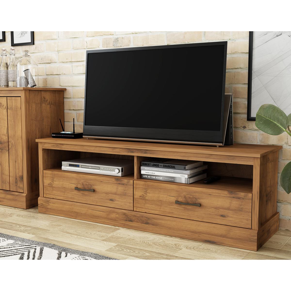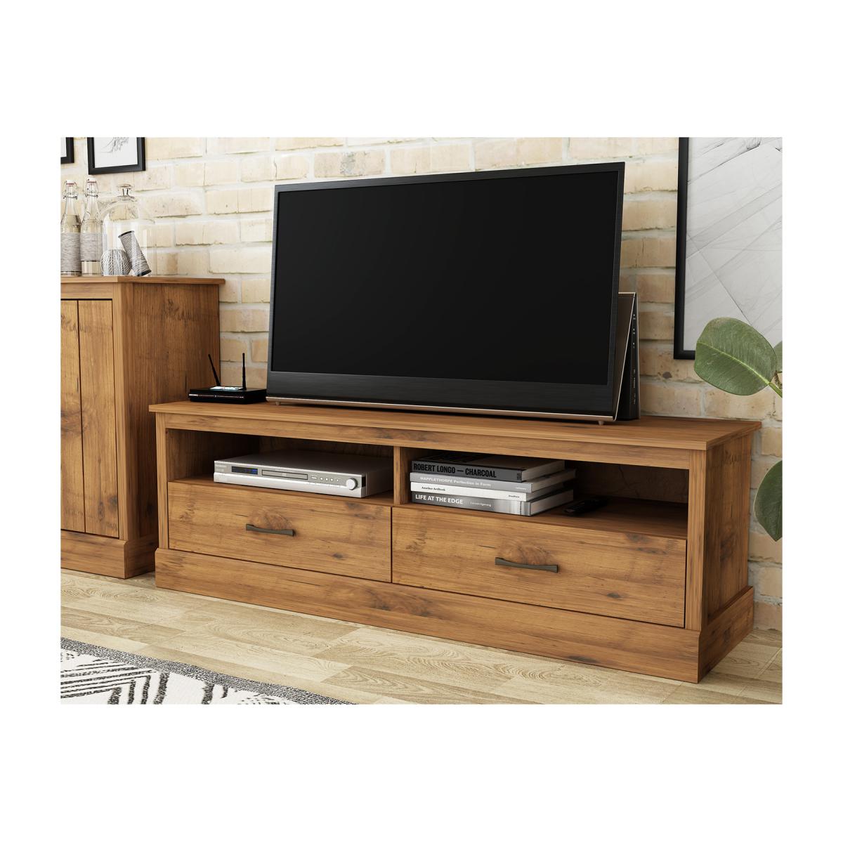 I’m a fan of the Camford TV unit for its warm, oak-effect finish and clean lines - it feels at home in both contemporary Scandi and more relaxed country schemes. The low profile keeps your screen at eye level, while the two open cubbies and drawers give you room to show off a few favourites (think small potted plants or a stack of art books) and hide away DVDs or remotes. To style it, tuck a woven basket into one of the open shelves for extra storage, then balance the look with a mix of framed photos and a small lamp on top. Keep cables neat with clips at the back and introduce texture underfoot with a patterned rug.