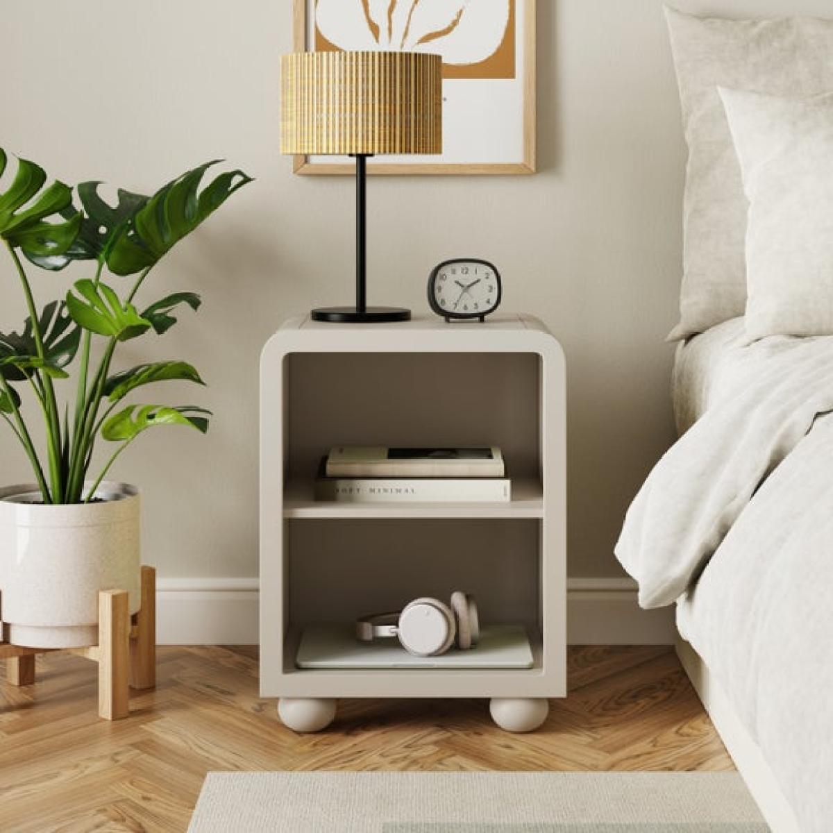 I think the Cami Bedside Table is a versatile piece that works well in a variety of schemes, from scandi to contemporary bedrooms. Its clean, rounded silhouette makes it approachable and stylish without overpowering the space. I love pairing it with neutral or pastel bedding, which lets the table’s soft edges stand out. Practical styling tips include using the top for a statement lamp or a small clock, while the shelves are perfect for stacking books or storing smaller essentials. Its understated design makes it easy to incorporate with other furniture, and its compact size is ideal for smaller rooms where space is at a premium.
