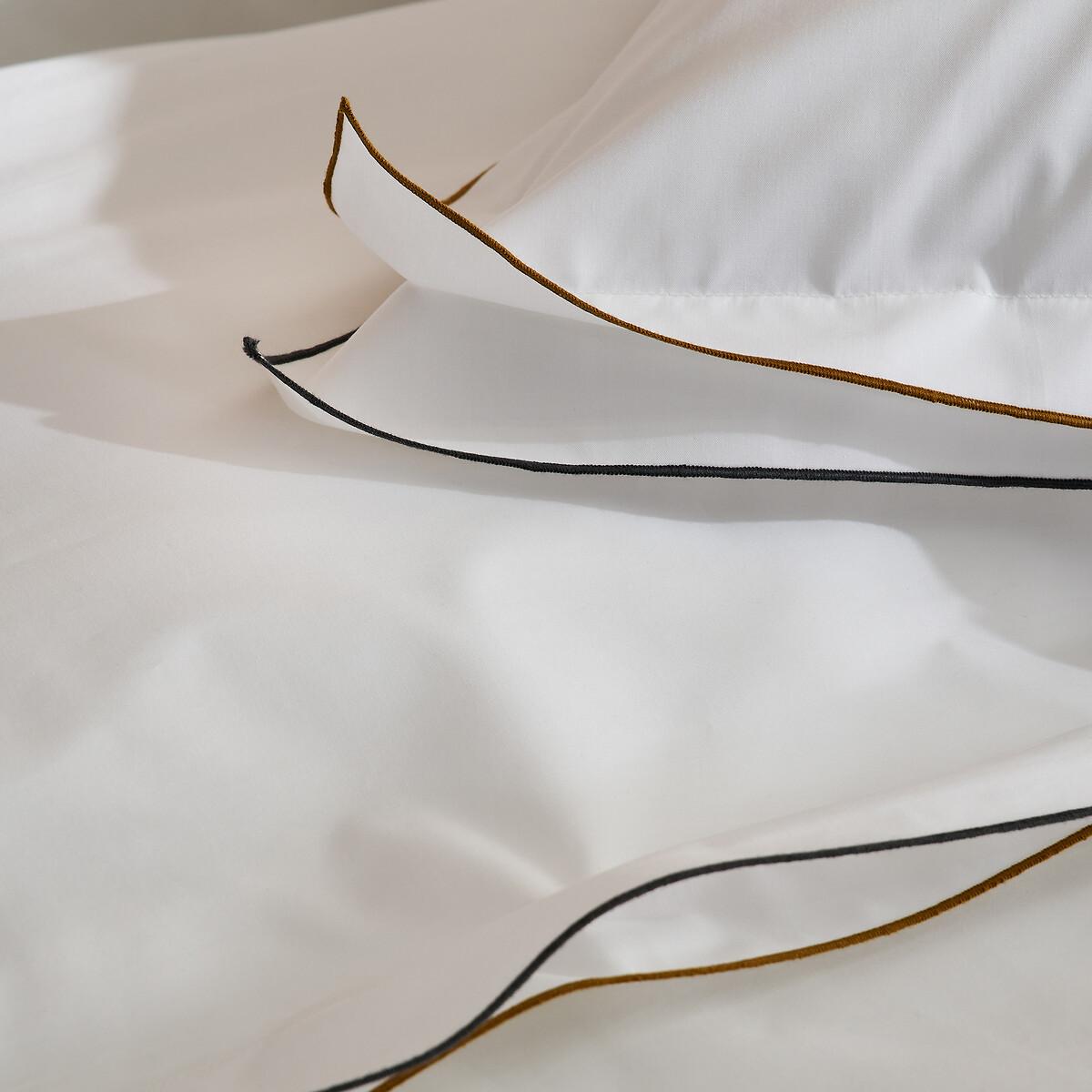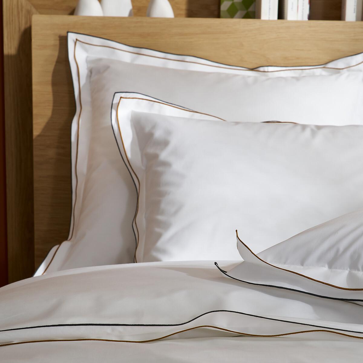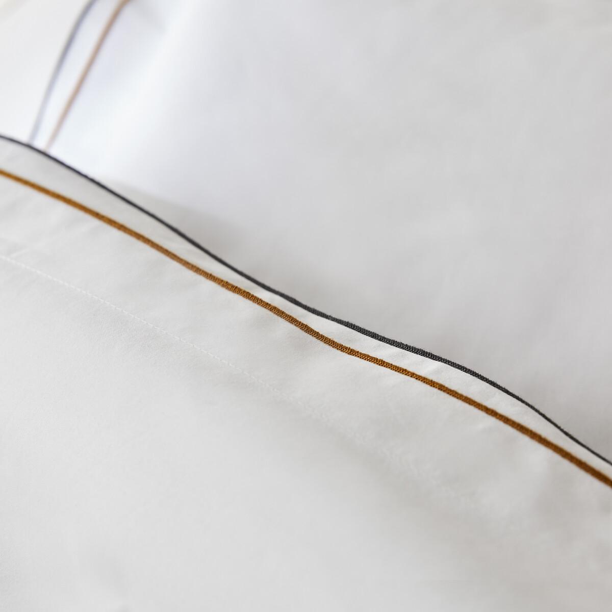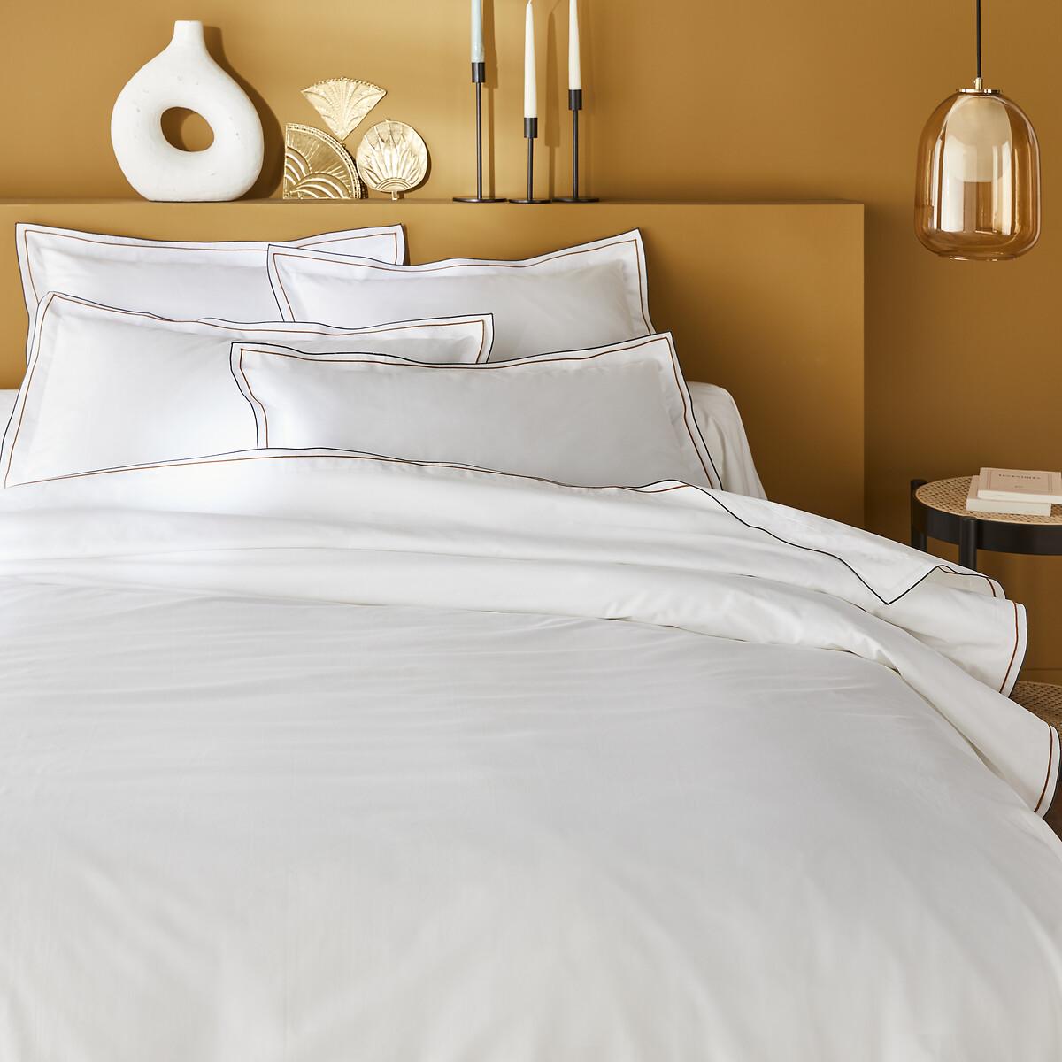 High quality and exceptional finishes. Egyptian cotton percale, double flat flounce and contrasting satin stitch, Camila is inspired by the bed linen of grand hotels. With its extra-long fibres, Egyptian cotton is renowned for its exceptional quality and resistance. Designed by La Redoute Intérieurs. The cotton percale offers a pleasant feeling of freshness and lightness. Its tight weave makes it particularly soft for premium comfort. A matte and smooth material that will soften over time. Product Details • 100% cotton, 140g/m2 • 200 thread count: The higher the thread count, the higher the quality of the weave • Cotton percale • Egyptian cotton • Double ruffle • Contrasting bourdon trim • Straight buttoned hem Care Advice • Machine washable at 60°C • By washing your laundry at 40°C instead of 60°C, you limit energy consumption. Dimensions • 140 x 200cm: Single • 200 x 200cm: Double • 240 x 220cm: King • 260 x 240cm: King • OEKO-TEX® Standard 100. Standard 100 certification by OEKO-TEX® tests textile products for harmful substances via an independent, international label.