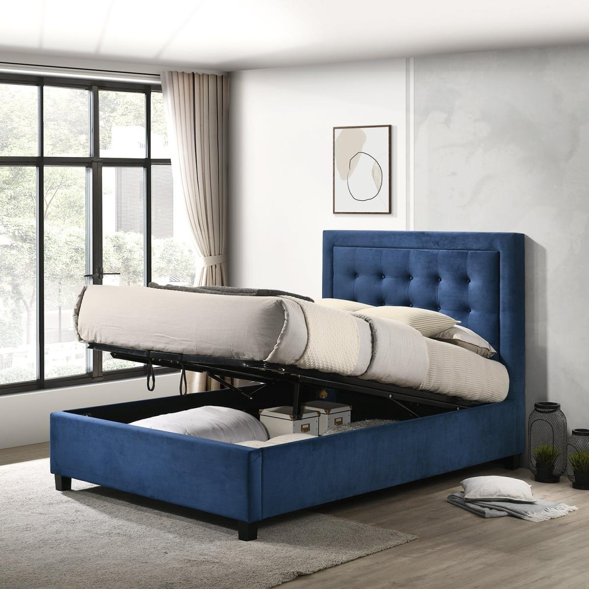 The Camila Ottoman Bed is a beautiful addition to any bedroom. Four square feet provide a sturdy base to a luxuriously soft bedframe, while the padded headboard offers a stylish accent against your wall. Button detailing on the headboard showcases a much-loved traditional design, while the modern lines and smooth velvet upholstery bring contemporary chic in abundance, and modern practicality comes in the form of the lifting ottoman function. Tidily store spare bedding or out-of-season clothing away when you don't need it, and then lift the slatted base to easily access all your belongings when you need them. This storage bed is ideal for smaller bedrooms or simply for creating a tidier space, and helps to facilitate a peaceful night's sleep.