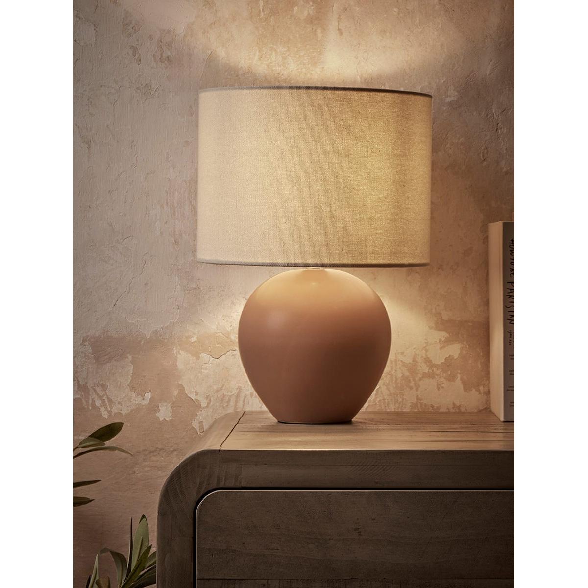 Add a gentle and comforting glow to your home with our Camilla Table Lamp. Warming terracotta tones sweep over the soft, cylindrical ceramic base which pairs beautifully with a neutral fabric shade for a minimalist and elegant design that works to add a subtle touch of colour to a neutral home.