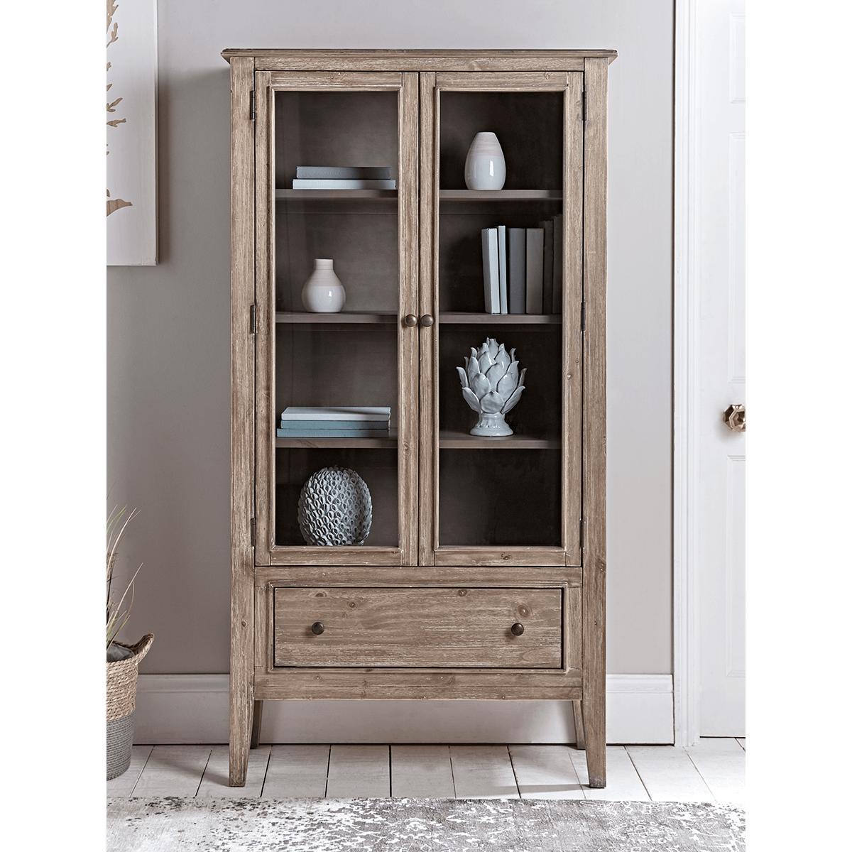 I love how this limewashed display cabinet brings a quietly weathered look without feeling too rustic. Its neutral tone and clean lines work equally well in Scandi-inspired settings, modern farmhouse schemes or a pared-back coastal lounge. The glazed doors let you show off favourite ceramics or books, while the lower drawer hides less-attractive bits and pieces. For styling, balance the shelves by mixing vertical and horizontal stacks of books with small vases or sculptural objects, and consider a soft LED strip on the top shelf to highlight your treasures. A textured rug and a couple of woven baskets nearby will tie the look together.