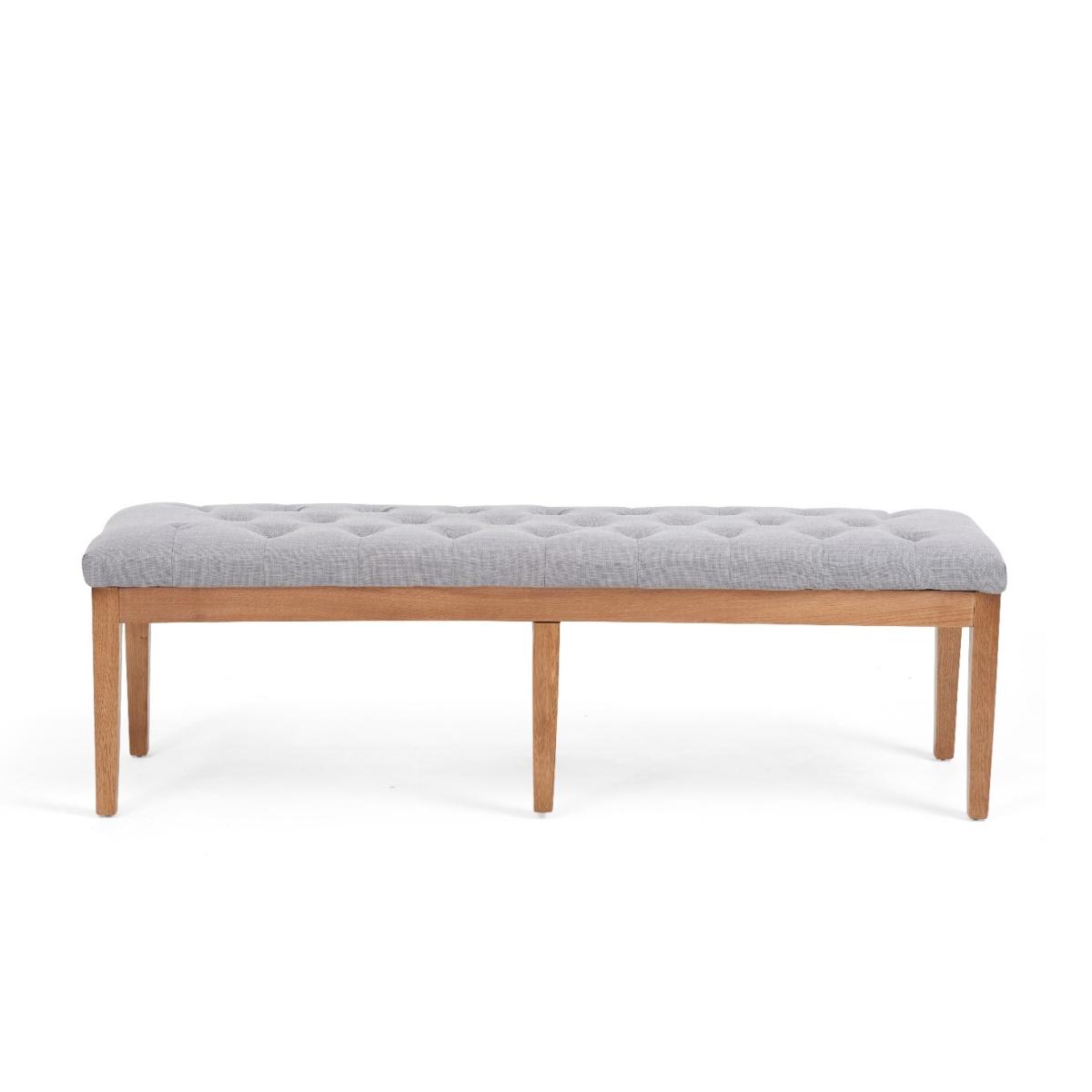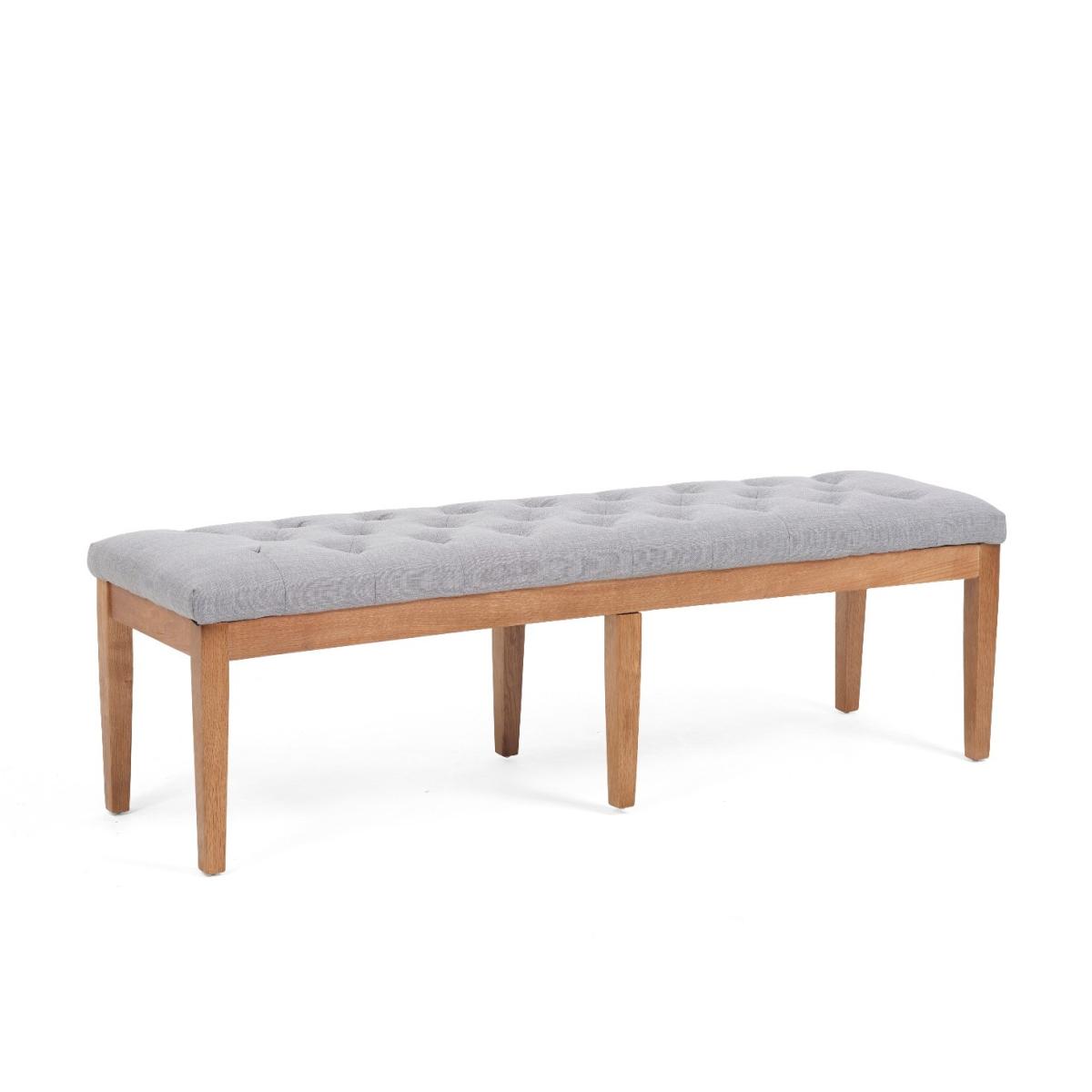 I love this bench for its versatile and understated aesthetic. The large grey fabric seat offers comfort and softness, making it an ideal piece for entryways, bedrooms, or at the foot of a bed. Its neutral tone allows it to blend seamlessly with a variety of colour schemes and styles, from minimalist to Scandinavian-inspired interiors. Practical styling tips include layering it with colourful cushions or throws for added texture, or positioning it near a window to create a cosy reading nook. Its straightforward design also makes it a great choice for both modern and more traditional spaces, offering functionality without compromising style.
