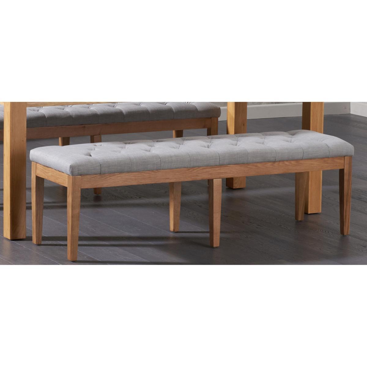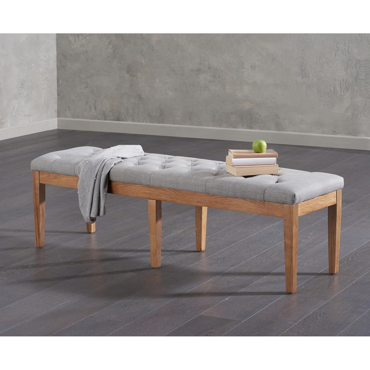 These Camille Large Grey Fabric Benches represent the ideal piece for lending any living space, dining room, or other area a touch of elegant grace, with their luxuriously foam-padded seats featuring supple S-springs and webbing, beneath fabric upholstery in neutral grey. Providing pragmatism as well as style, these benches stand on durable solid oak frames with practical straight legs, and also come in cream.