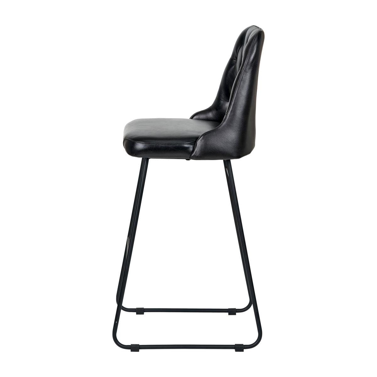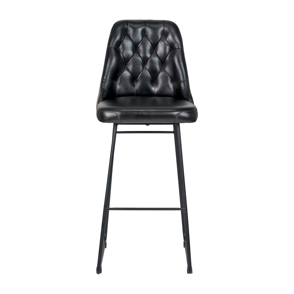 * Metal frame* Real leather* Hand stitched diamond pattern Made from real leather and hand-stitched in India, this bar stool features a distinctive stitched diamond back design that adds a touch of sophistication. The stylish black metal legs complement the sleek leather finish, creating a contemporary look that fits seamlessly into any modern decor.