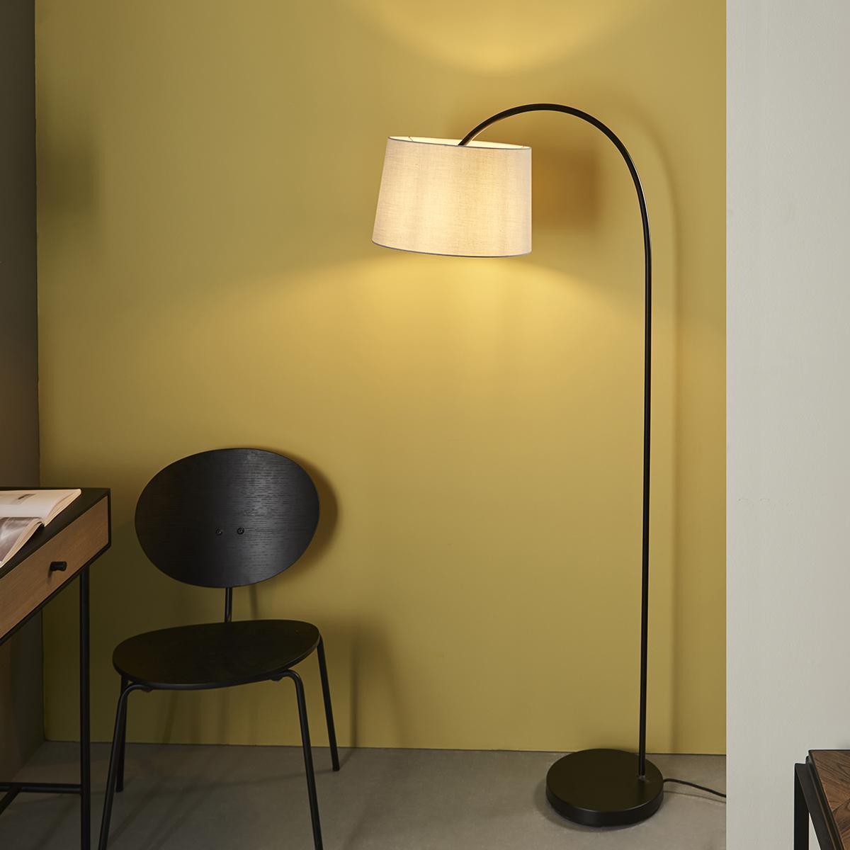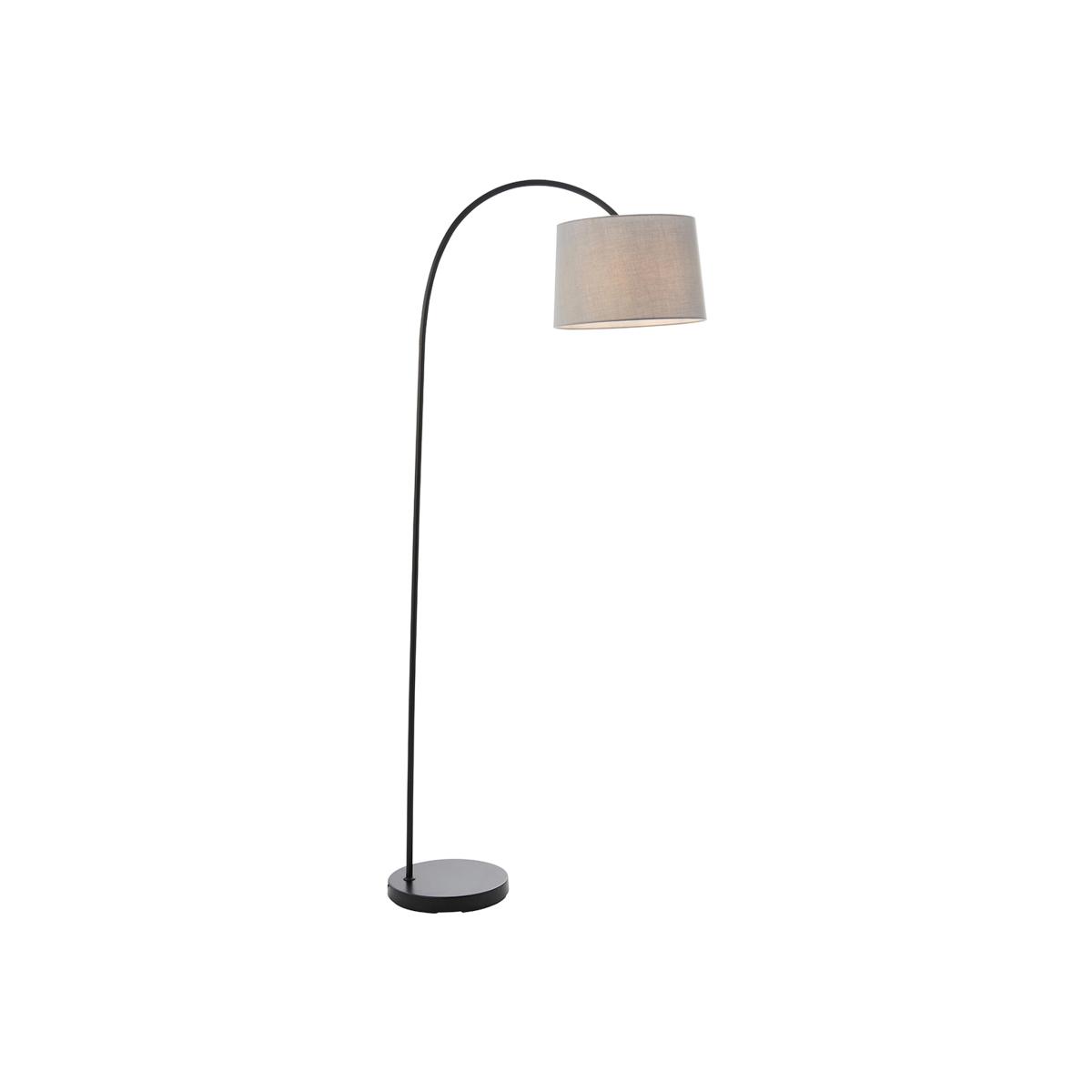 Camilo Floor Lamp in Matt Black with Light Grey Fabric Shade