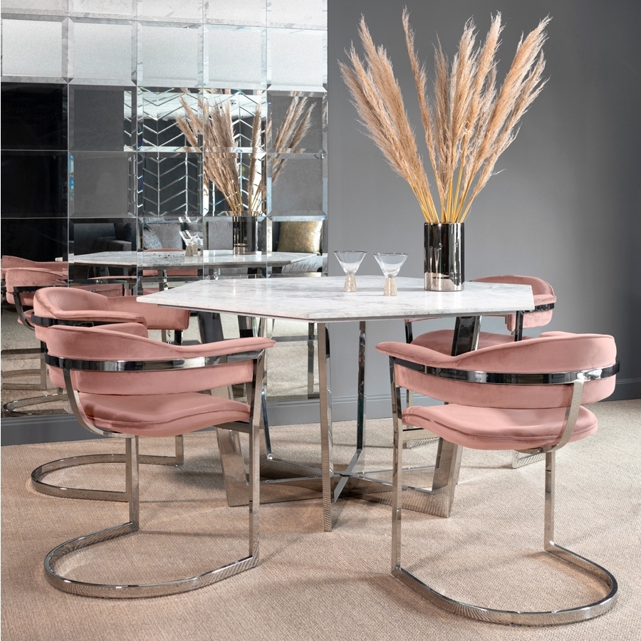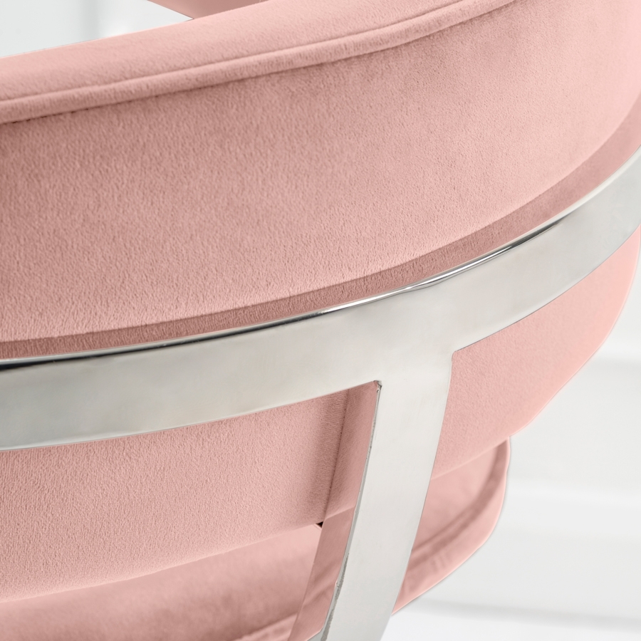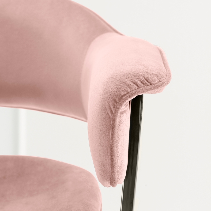This blush pink chair adds a lovely soft touch to dining spaces, making it ideal for those wanting a subtle pop of colour without overpowering the room. It works well in contemporary interiors, especially when paired with neutral tones or marble-topped tables for a chic, modern look. For a more eclectic scheme, consider mixing with darker wood or metallic accents. Practically, its curved back and padded seat ensure comfort for long dinners, while the light frame keeps the silhouette airy. Styling tip: layer with textured cushions or throws for extra comfort and visual interest, or use it as a statement piece in a pastel or minimalist setting to keep the focus on its soft hue.