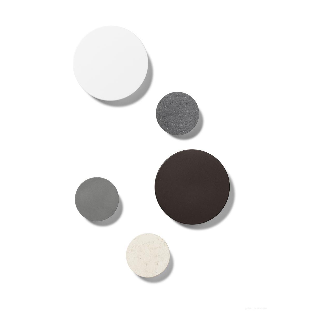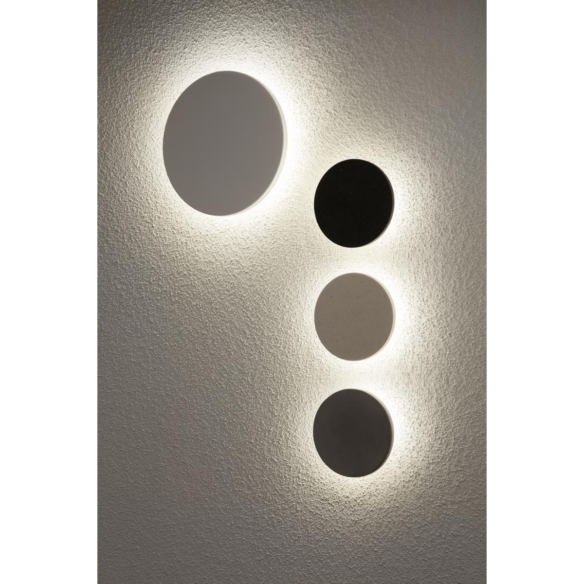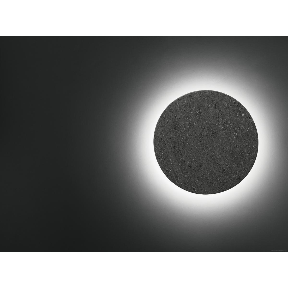 Designed by Piero Lissoni, the Camouflage outdoor wall light is sober and discreet. When the light is out, it blends into the background. The LED light source behind the small disc emits reflected, diffuse light. The Camouflage wall lamp spreads a halo of light on the wall and creates subtle shadow plays. The circular shape of the disk is perfectly clear against the light. The Camouflage wall lamp is available in a superb range of materials and colours: concrete, grey basalt stone, Crema d'Orcia beige stone, painted aluminium. Minimalist and chic, these wall lights dress your wall with elegance. The ideal is to mix sizes, materials and colours to create beautiful mural compositions. This outdoor LED wall light requires the use of an installation box, to be ordered separately (contact us). The driver can be installed remotely (in this case, the optional box is not necessary) or placed behind the device using the appropriate optional box. The integrated LED light source can be replaced only by the manufacturer (contact us).