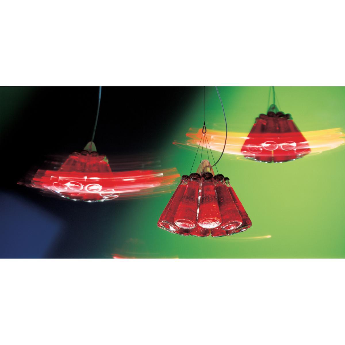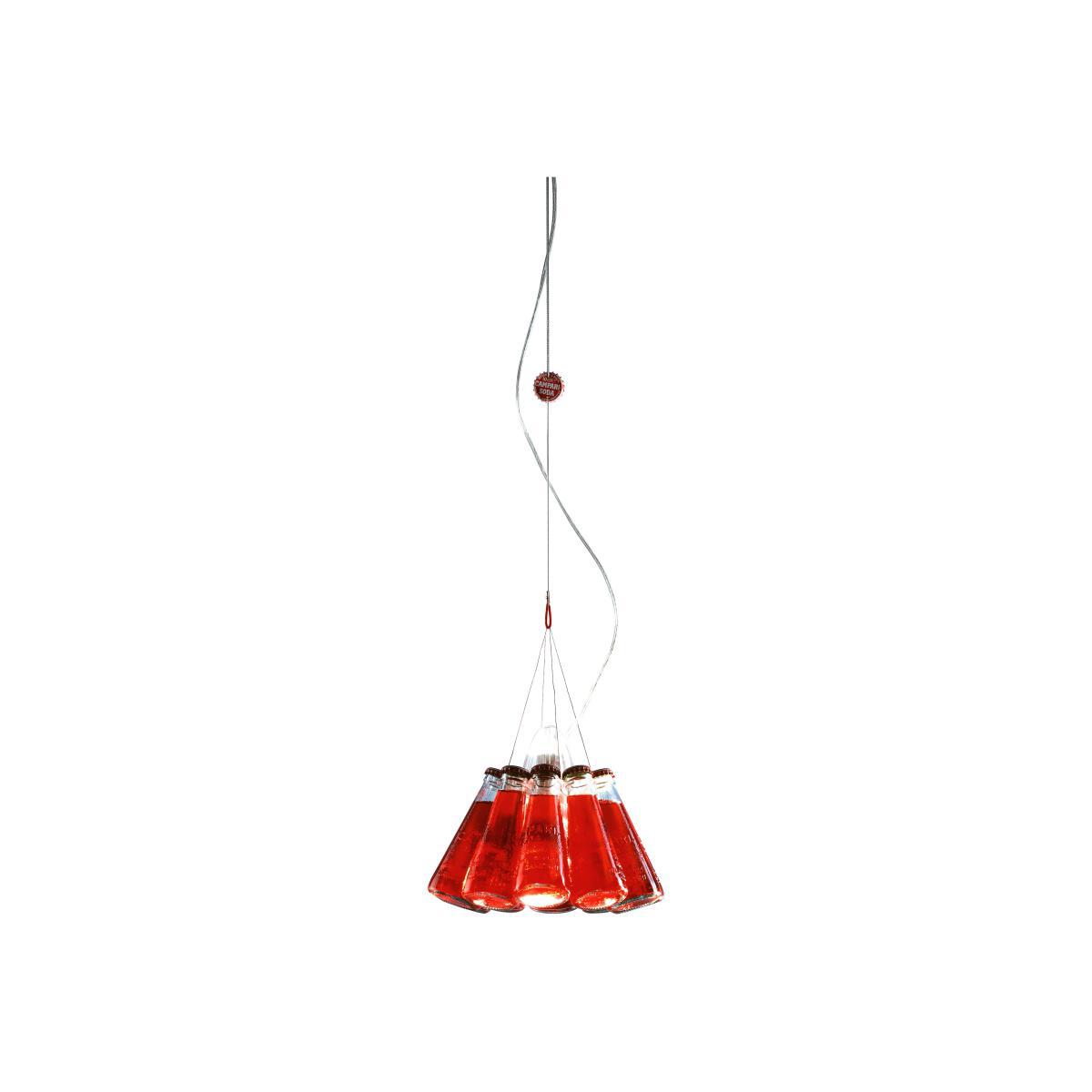 Created in 2002 by Raphaelle Celentano for Ingo Maurer, the Campari suspension light is already considered as a design icon. Inspired by Andy Warhol's works, the Campari light has an aesthetic look as well as being full of humour. Raphaelle Celentano has chosen a classic of the Italian design, the Campari bottle, and decided to use it as a visual objet without changing anything about it. The Campari bottles generate a beautiful red light. They can be removed and easily replaced. The cable is height-adjustable and has a maximum length of 550 cm. Also available with a cable of 300 cm for lower ceilings.