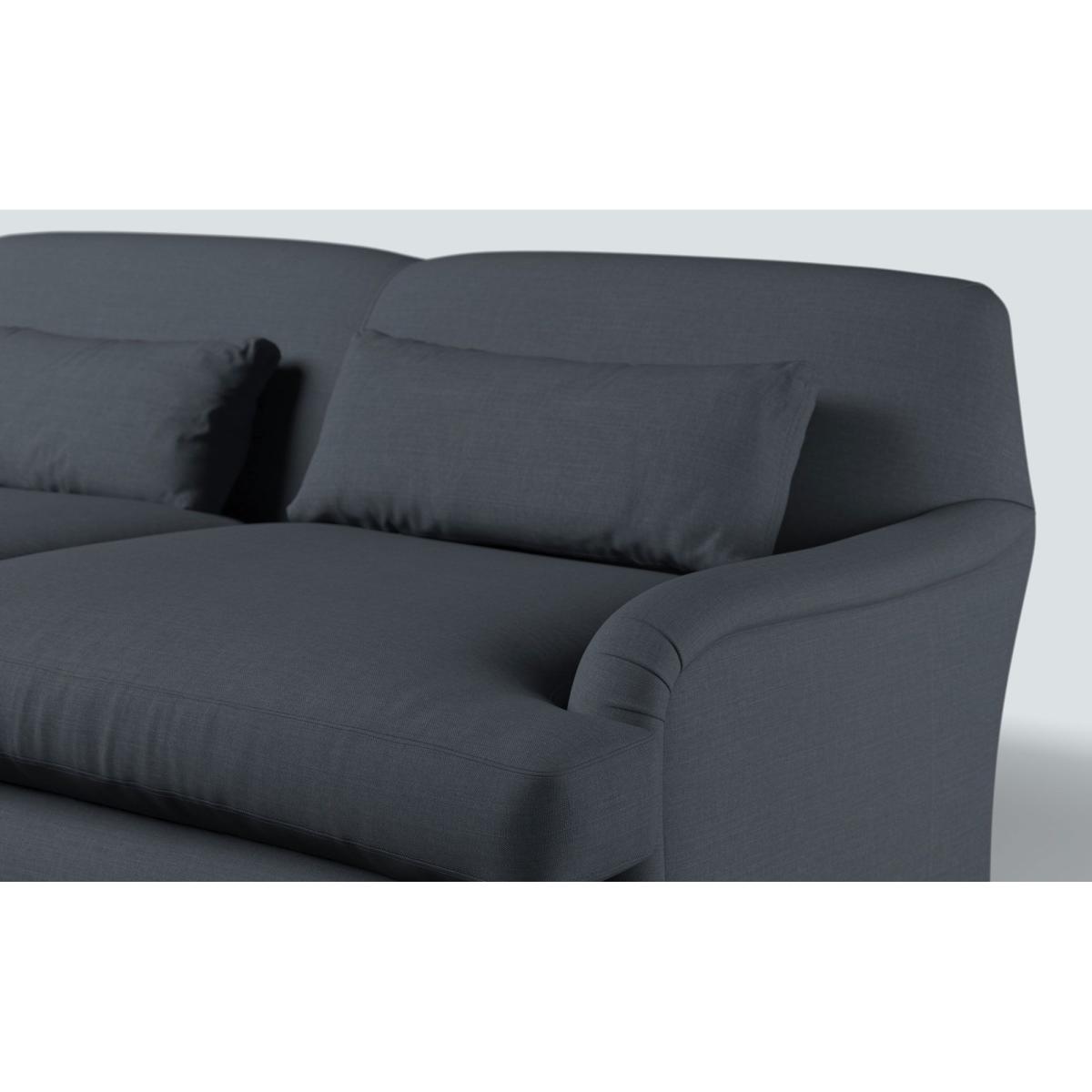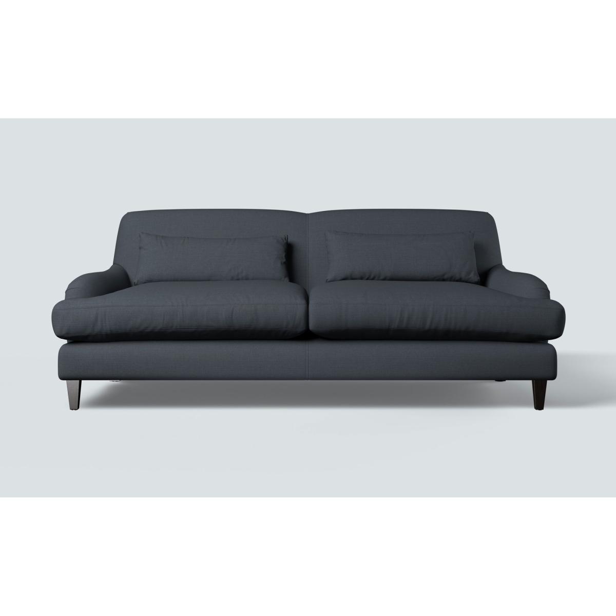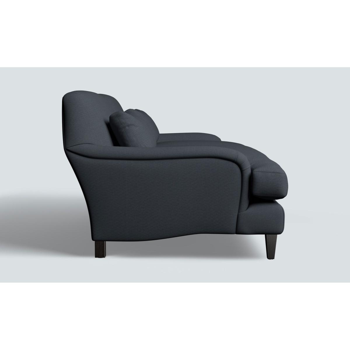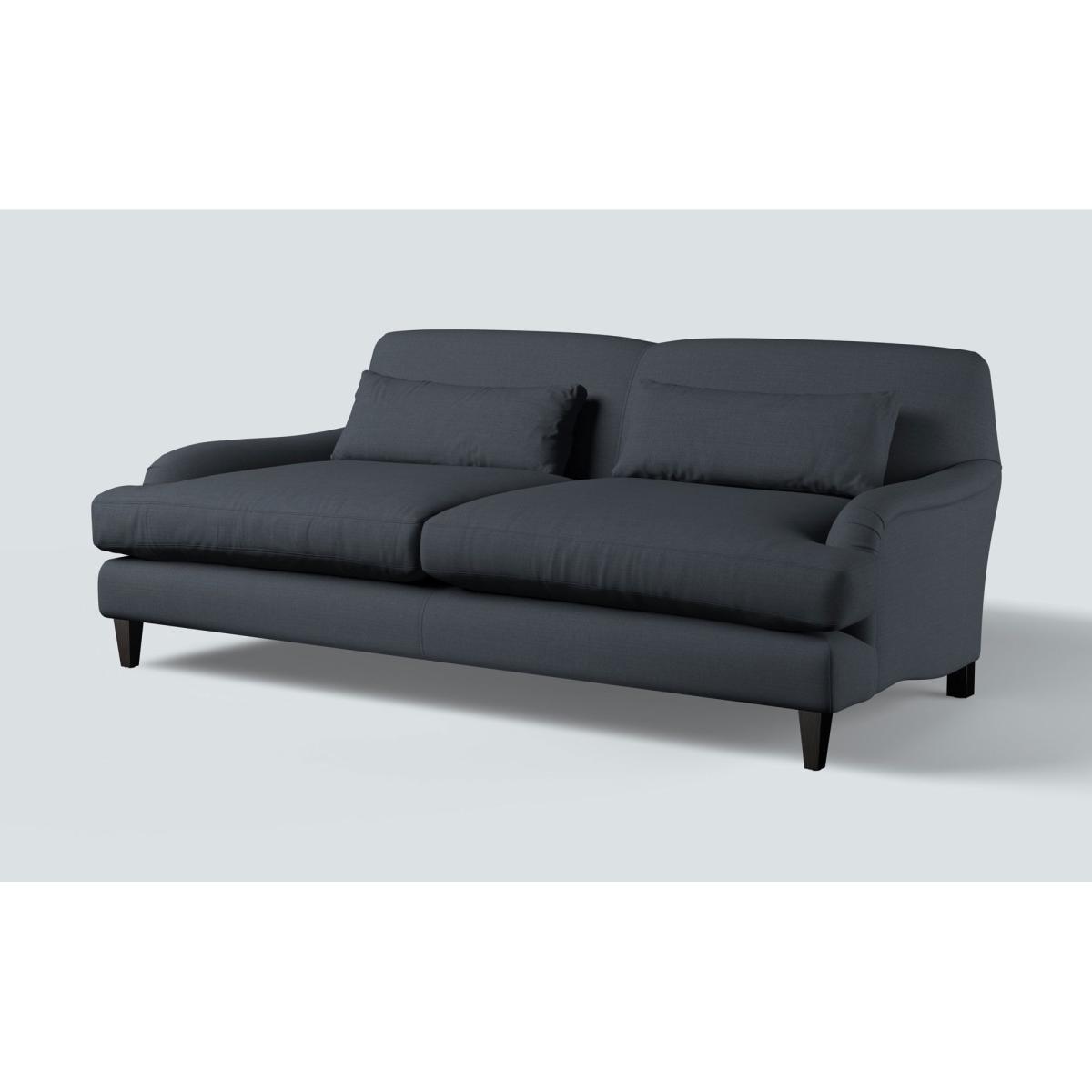 From a Jamie Graham design based on a classic English sofa, this elegant and luxurious sofa is so deep you’ll want to tuck in your feet and curl up for a long rest. Available in a wide range of colours and fabrics, this stunning sofa is handmade by a father and daughter team in Derbyshire. Pictured: 3 seater sofa in Lava Stain Guarded Velvet. Handmade in 8-12 weeks and then delivered usually within 10 working days.