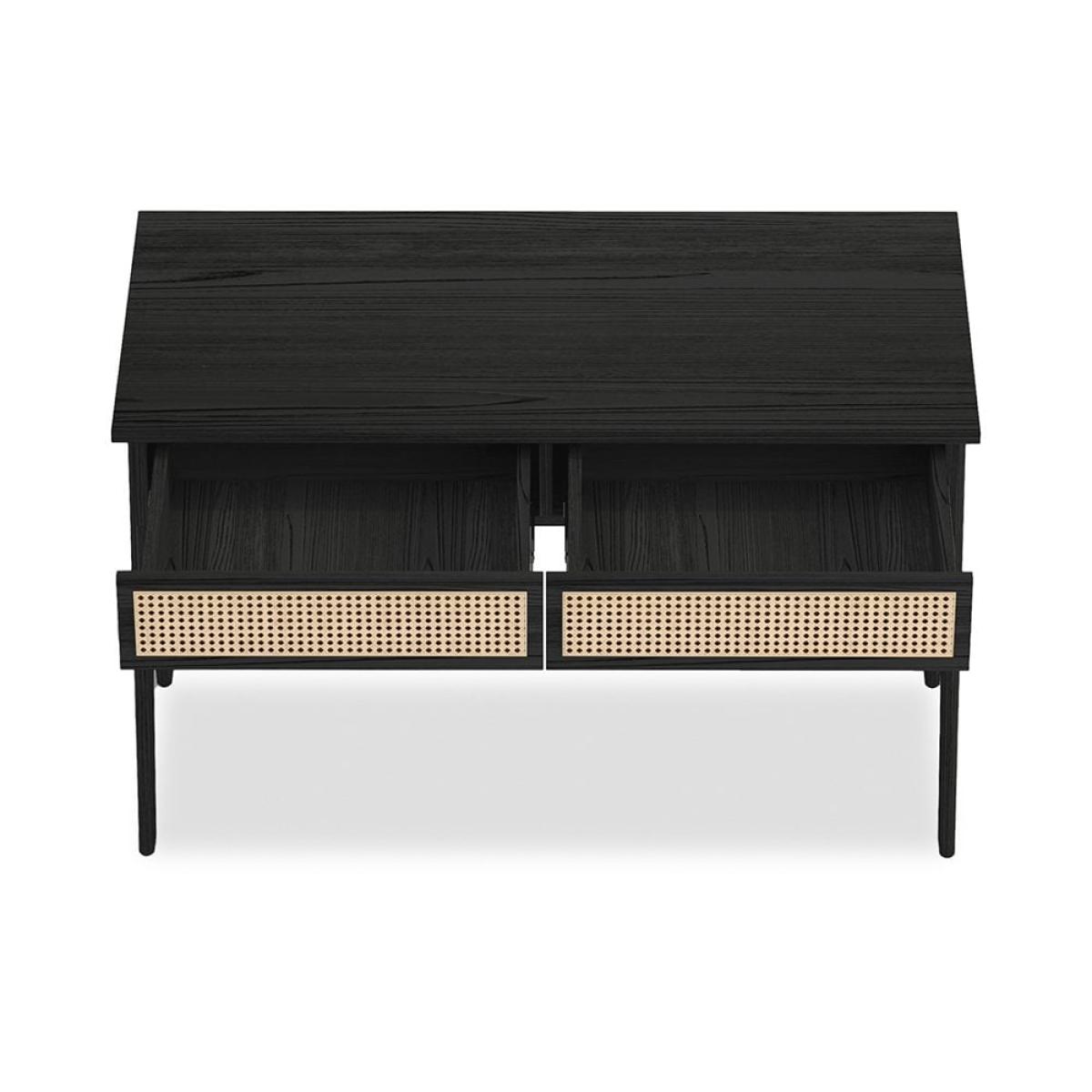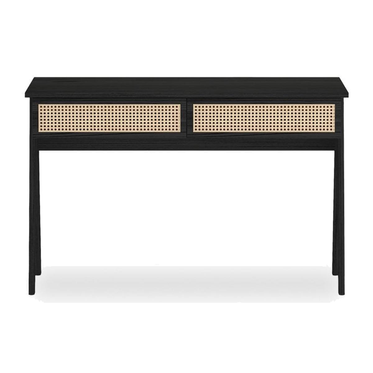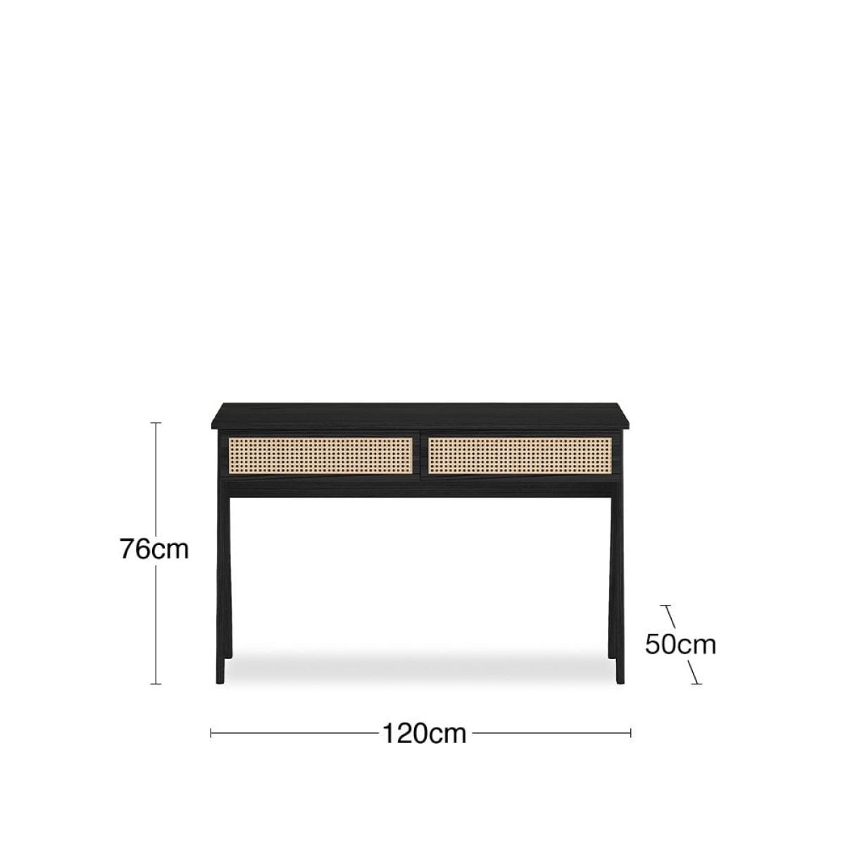 For a versatile and stylish desk that mixes Scandinavian style with Mid-Century design. The Campbell Wooden Desk is ideal for home offices and bedrooms as a vanity table. In a black finish and natural cane detailing on the drawers, we love the combination of light versus dark. A practical desk with 2 large spacious drawers that expand across the width of this large desk. Made from melamine board that is highly durable and easy to maintain for a long-lasting piece suitable for everyday use.