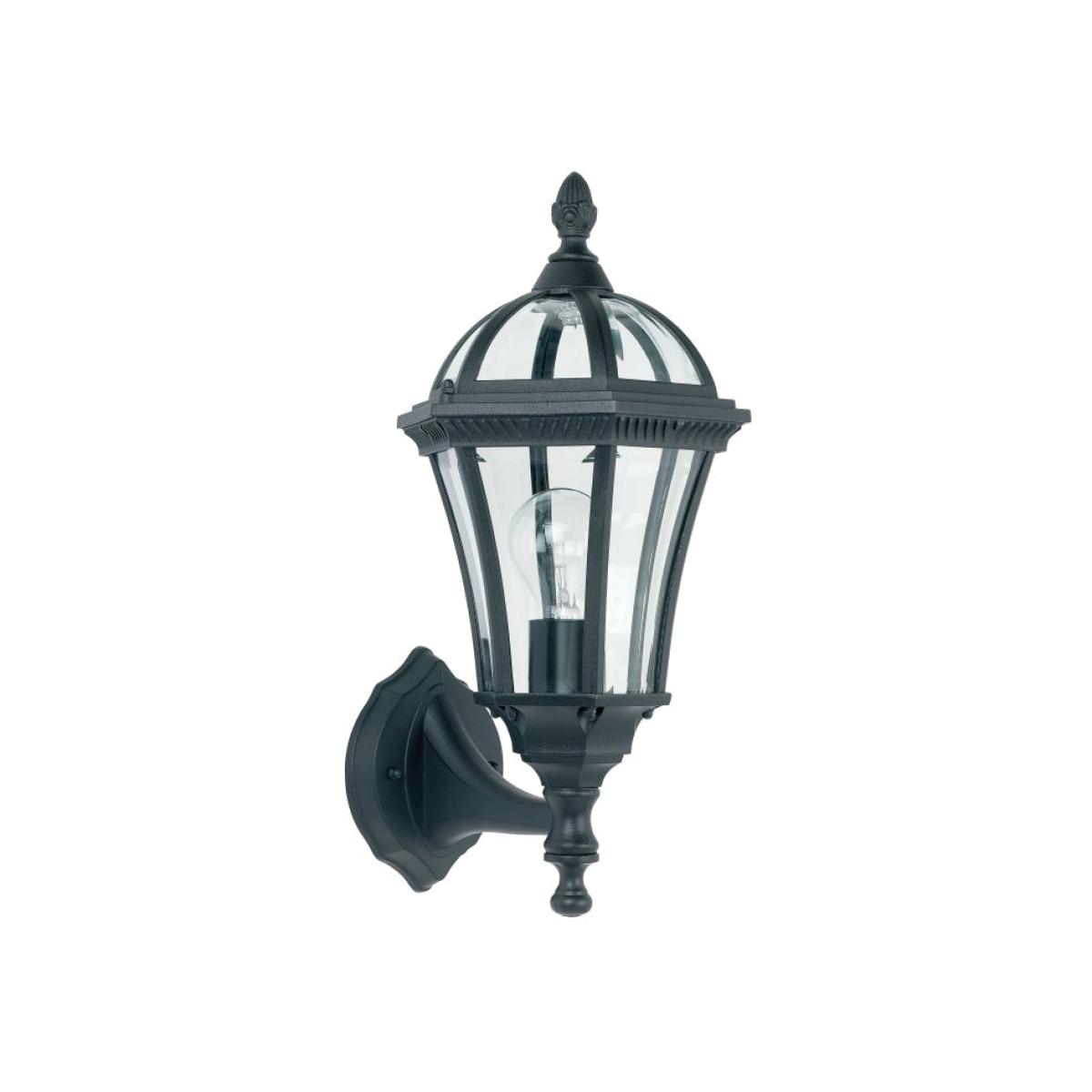 A traditional die cast aluminium uplight wall lantern with a matt black finish. It is IP44 rated so is suitable for outdoor use, and both dimmable and suitable for use with LED lamps. Others available in this range. Colour: Black. Lamp Holder Type: E27. Bulb Type: GLS. Maximum Bulb Wattage: 60. W. Bulb Included: No. Number of Bulbs: 1.