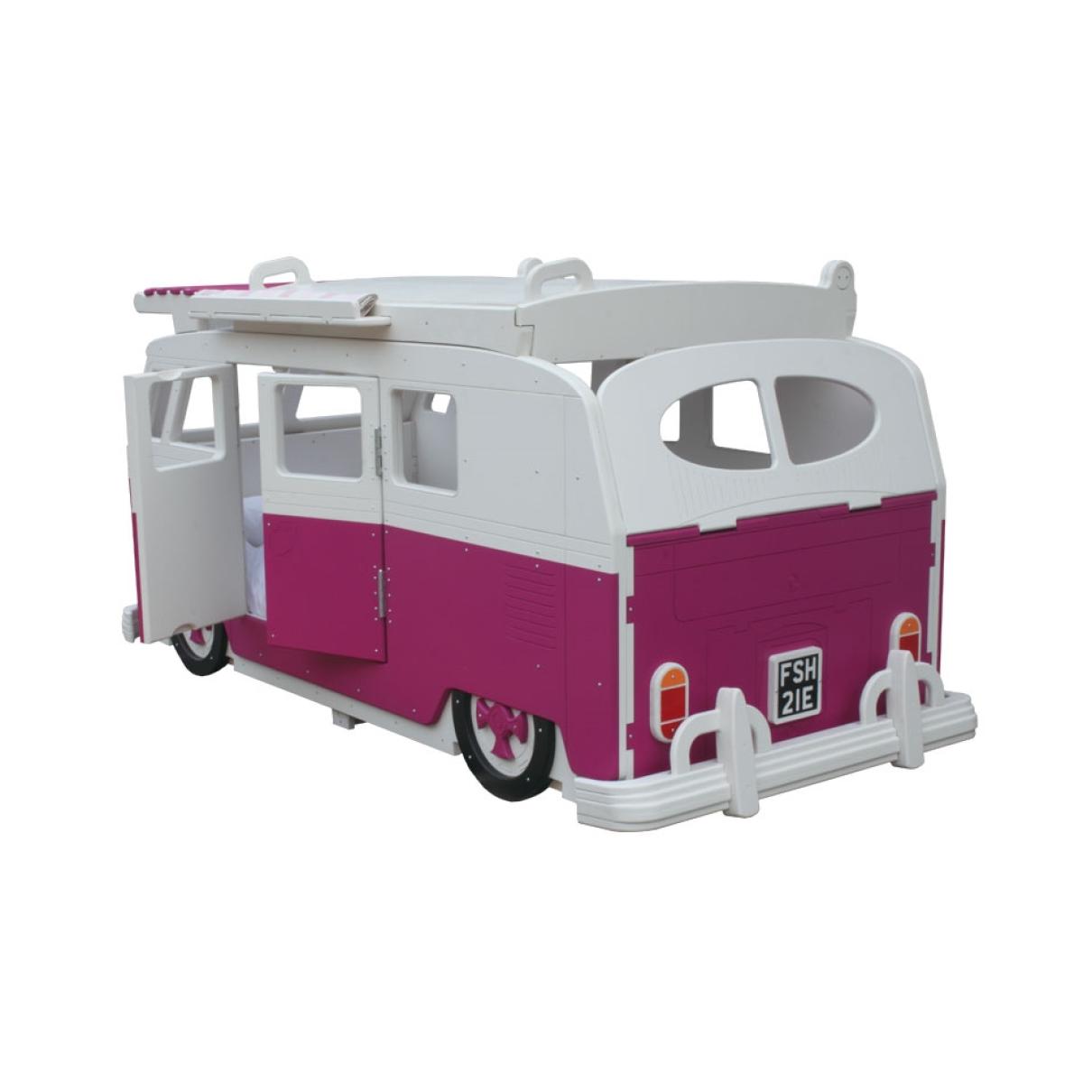 I love this camper van bed as it instantly brings a sense of adventure and playfulness to a child's room. Its whimsical camper van design is ideal for themed or eclectic interiors, especially when paired with soft pastel or updated vintage accents. To style it effectively, consider mixing in cosy textiles like striped cushions or soft throws to soften the look, and complement it with other retro or travel-inspired decor. Practical tips include keeping the surrounding space minimal to let this statement piece shine, and adding extra storage or shelving nearby for a functional yet fun setup. This bed is perfect for creating a lively, imaginative space that aged children will love and that grows with their interests.