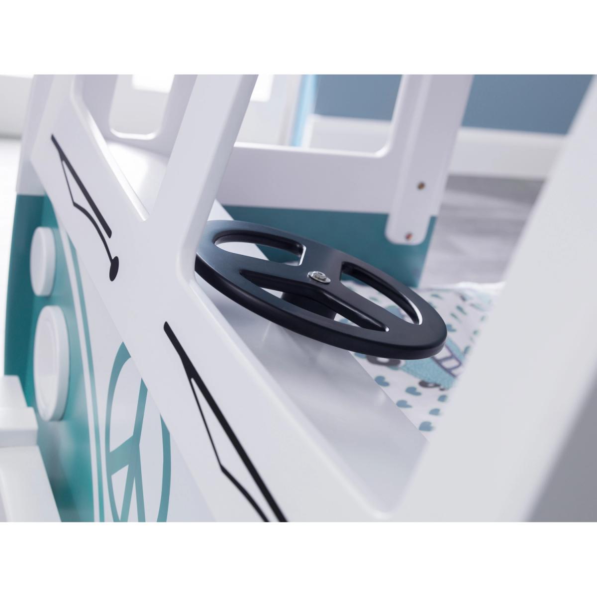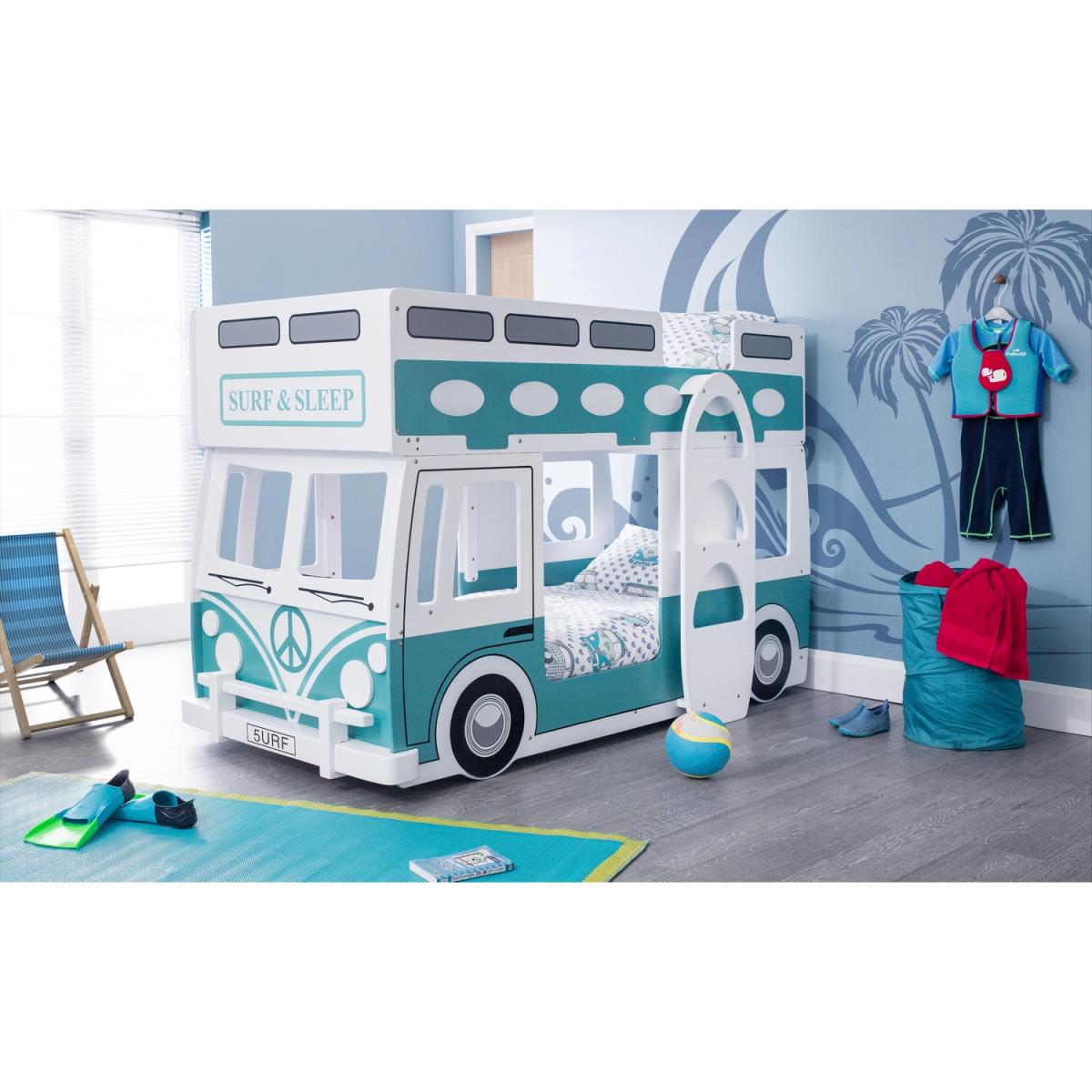 The Campervan Bunk Bed is the perfect fun design for your child's bedroom! This beautifully crafted, sturdy bed will make your child feel secure at bedtime, as well as provide a fun space for them to use during the day. Featuring a surfboard style ladder, steering wheel and very accurate detailing to give a realistic look.