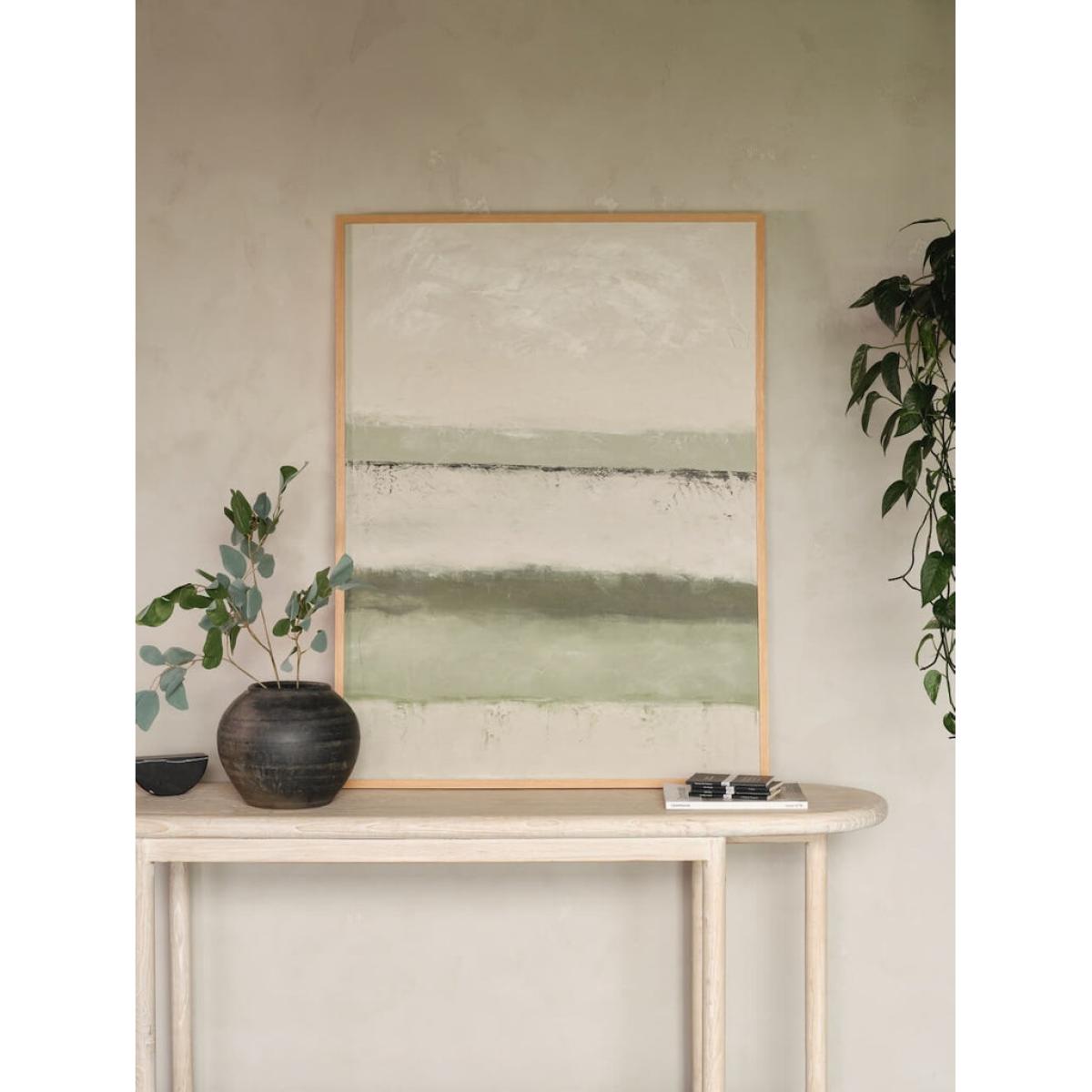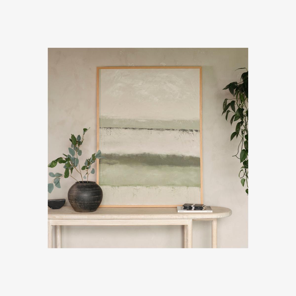 The Campos Wall Art has been hand painted by a Danish artist on the finest canvas using acrylic paints. Since each one his hand painted slight variations may occur and therefore each piece is unique. A modern piece of wall decor, with a simple design and soft subtle green tones. Finished with an oak frame, this piece will had a warm and calming effect to your walls.