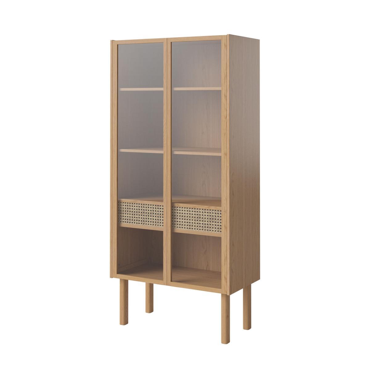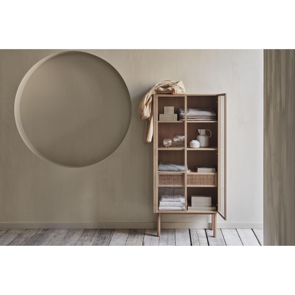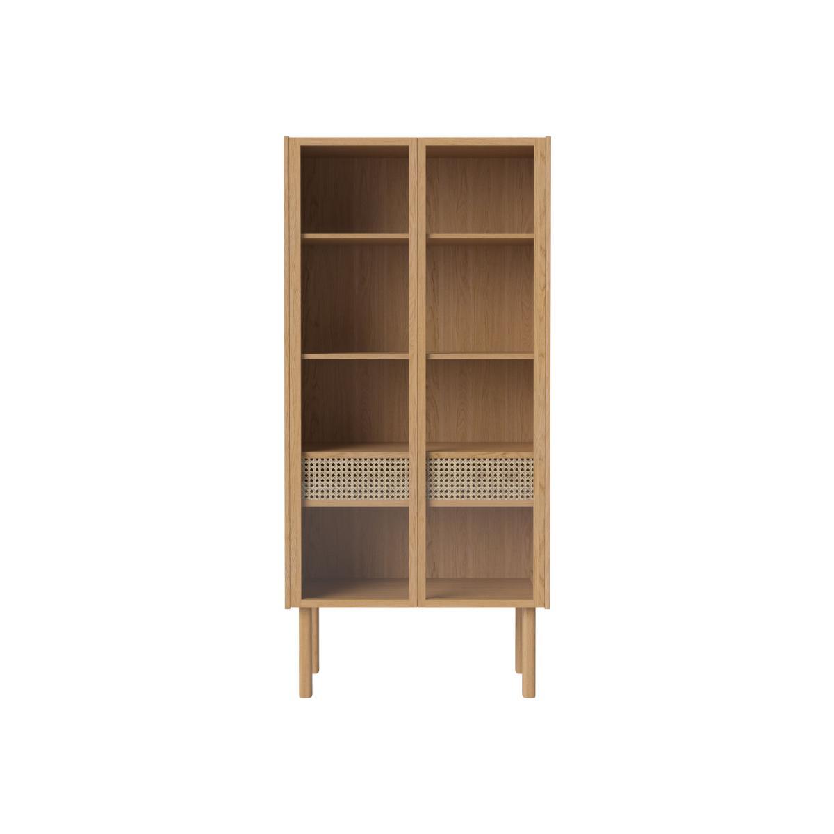 Natural simplicity for this elegant collection of furniture in natural oak veneer. Each model in the Cana series has openwork, ethereal facades in rattan canework which give it an authentic, airy appearance. Danish design duo Steffensen & Würtz were inspired by the tranquil, characteristic atmosphere of Danish seaside hotels, where serenity and authenticity create a very special atmosphere. The transparent, ethereal expression of the canework evokes this source of inspiration and elegantly recalls the functional and aesthetic advantage of a simple, clean, minimalist furnishing style. This Cana high sideboard has two transparent glass doors, four shelves and two drawers in rattan canework. Each of the Bolia brand's creations is built to last and handcrafted by some of Europe's finest manufacturers. Bolia products are tested to the highest quality standards, and meet international and European standards for strength, durability, stability and safety. Natural materials take pride of place. The wood is FSC®-certified, which guarantees sustainable forest management and good working conditions. Passionate about the definition of the new Scandinavian design, the team of designers is entirely dedicated to creating new, inspiring, unique and original models.