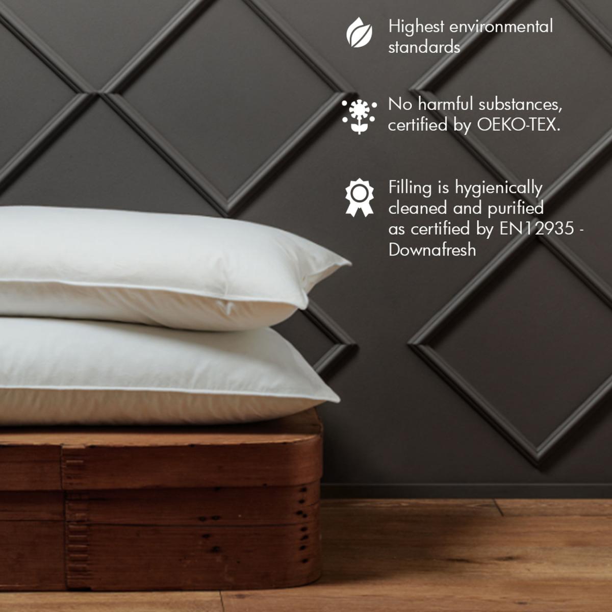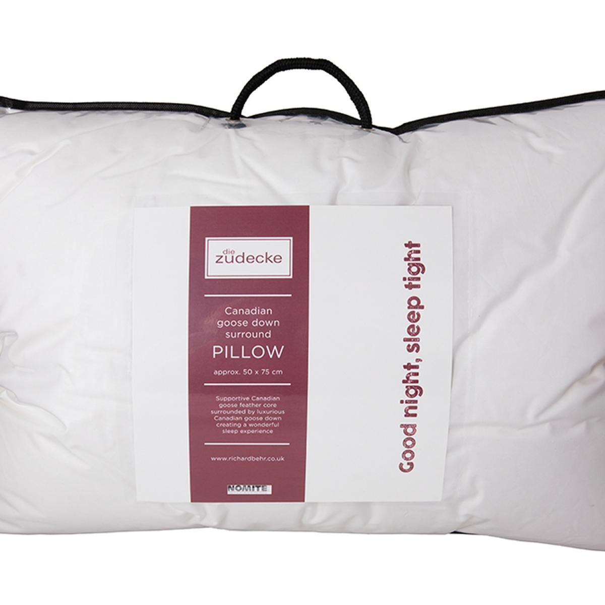 The Die Zudecke Canadian Goose Down Pillow is our most luxurious pillow filled with 100% Canadian Goose Down. The plump, fluffy, light pillow is ideal for everyone including side and back sleepers. It is filled with 100% Canadian Goose Down to provide a plump, soft surface to sink your head into. All Die Zudecke products are NOMITE certified. This is issued by the EDFA and means that the fabric is so tightly woven that house dust mites cannot penetrate the fabric, making them suitable for sufferers of house dust mite allergies.