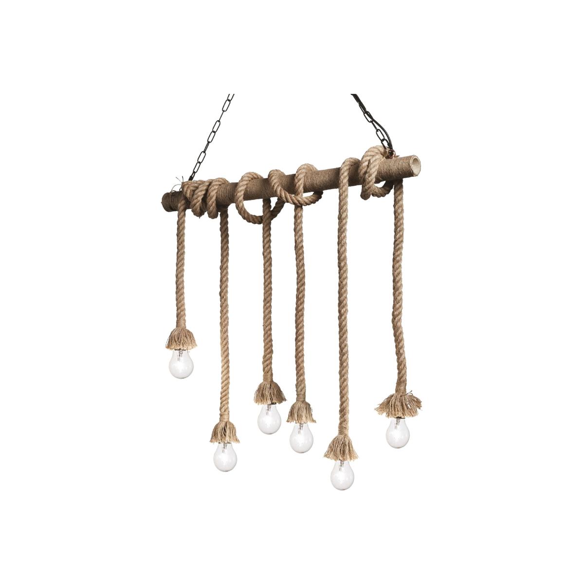 This pendant collection has a original design which is sure to influence its surroundings in a positive way. The natural look of the fitting allows it to match any surroundings, and goes particularly well in classic style kitchen setting. The metal frames and electrical cables are hidden by the natural hemp rope which completely covers them, with the exception of the six light fitting which shows the metal chain from which the rest of the fitting hangs. Class two.
