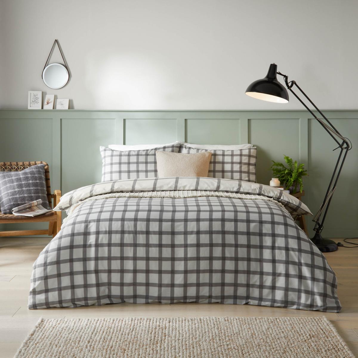 Effortlessly elevate your bedroom dcor with the Canberra Check Printed Duvet Cover Set, a perfect blend of timeless style and comfort. This reversible design showcases a timeless, modern check pattern, offering two stylish looks in one. With small checks on one side and larger checks on the other, it seamlessly complements any decor. Crafted from an easy-care polycotton blend, it delivers the ideal balance of softness and durability, keeping you cosy while standing up to everyday use. This duvet cover is designed to effortlessly complement any room, making it an excellent choice for those who value style and practicality.