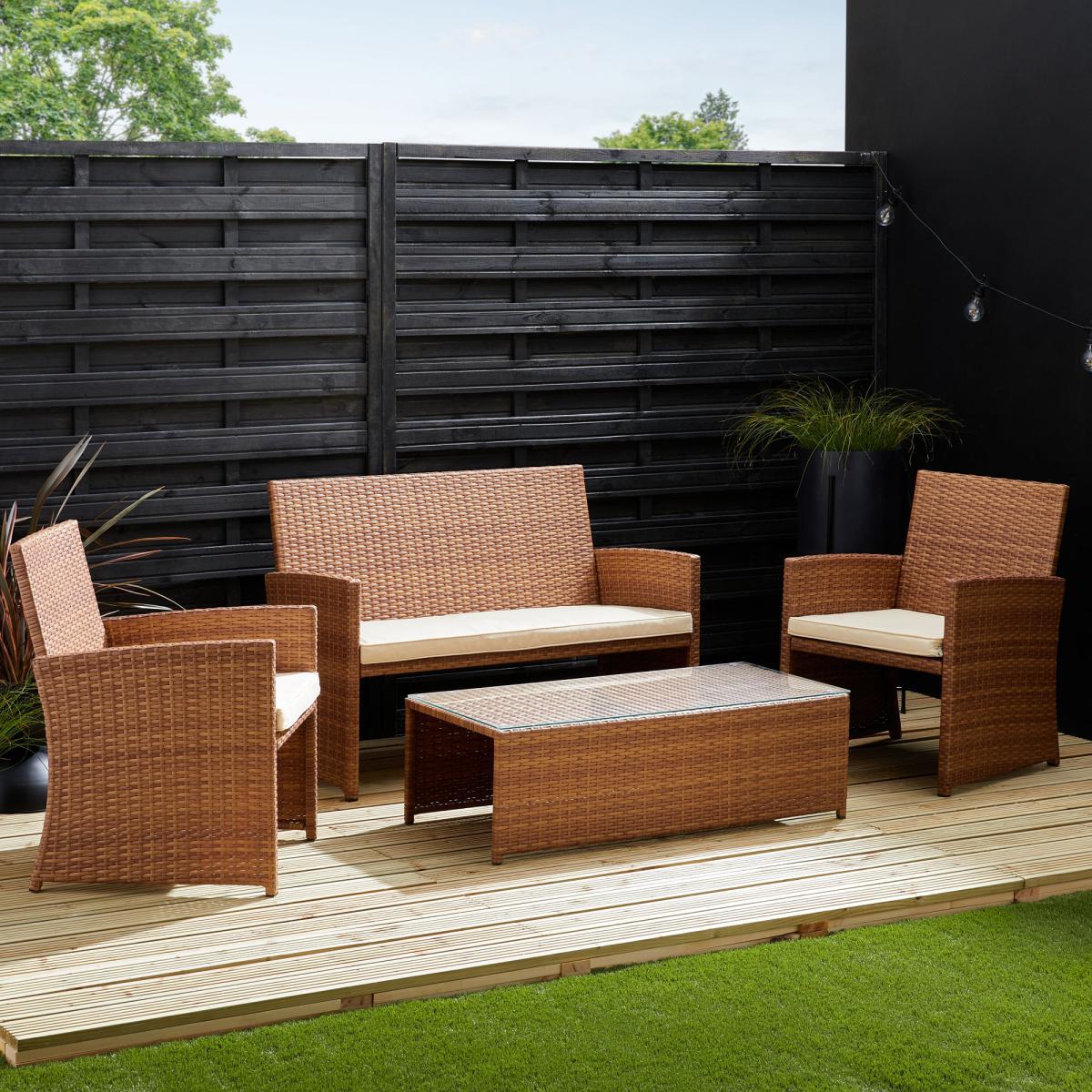 Cancun 4 Seater Rattan Taupe Conversation Set Brown