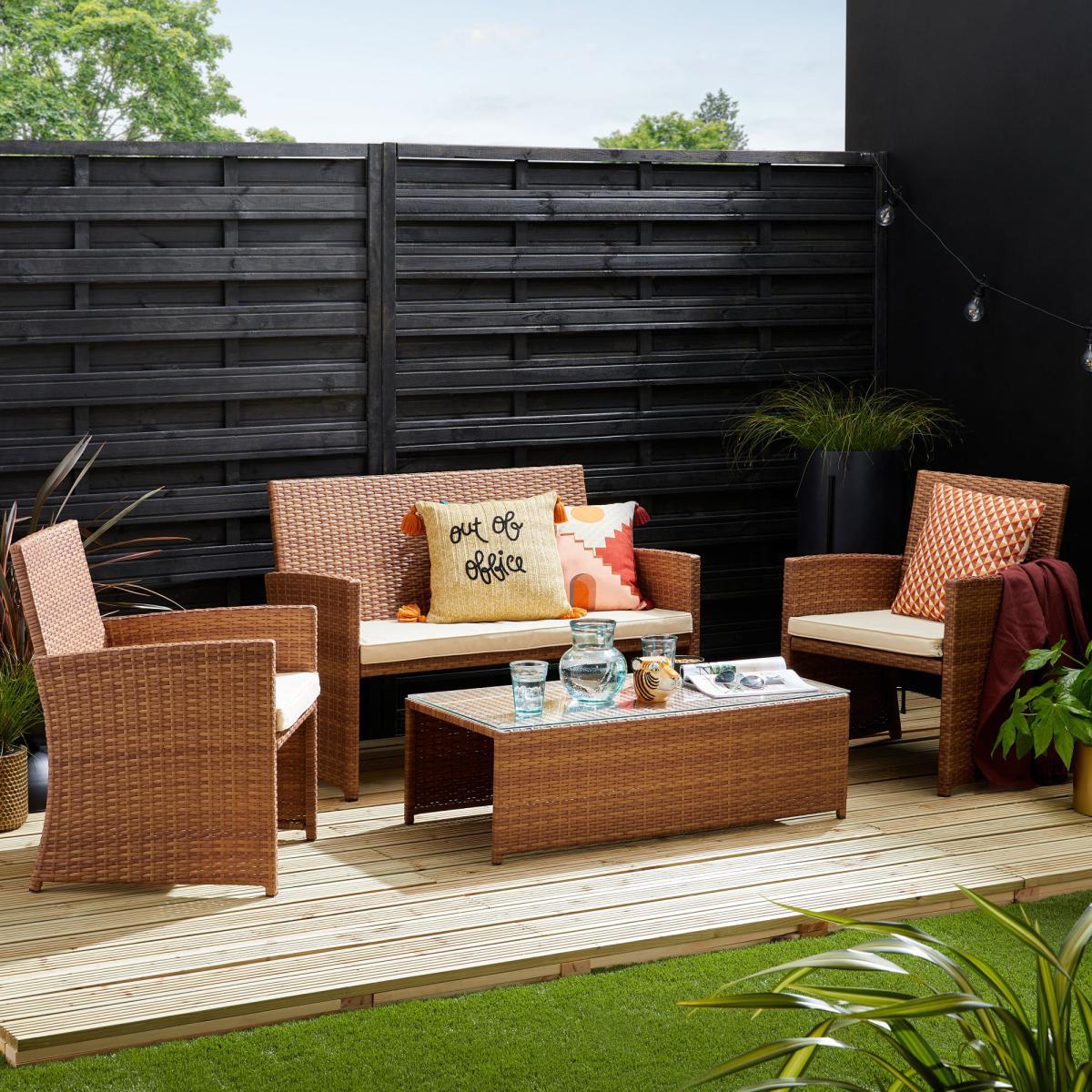 I love this set because of its versatile taupe rattan finish, which effortlessly bridges indoor and outdoor styles. It’s ideal for creating a relaxed, contemporary look in a garden or patio space, but it can also work well in sunrooms or conservatories if you’re going for a more casual aesthetic. Practical styling tips include adding colourful cushions to inject personality and comfort, or layering with outdoor rugs to define the seating area. For a cohesive look, pair it with greenery and natural textiles, and consider placing a string of outdoor lights for evening gatherings. Its neutral tone makes it easy to adapt to a range of colour schemes and décor styles.