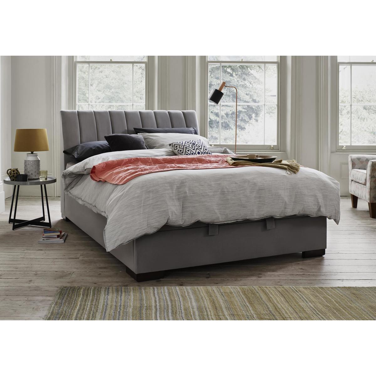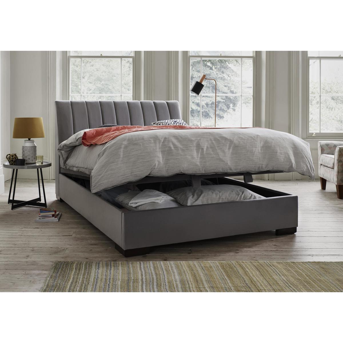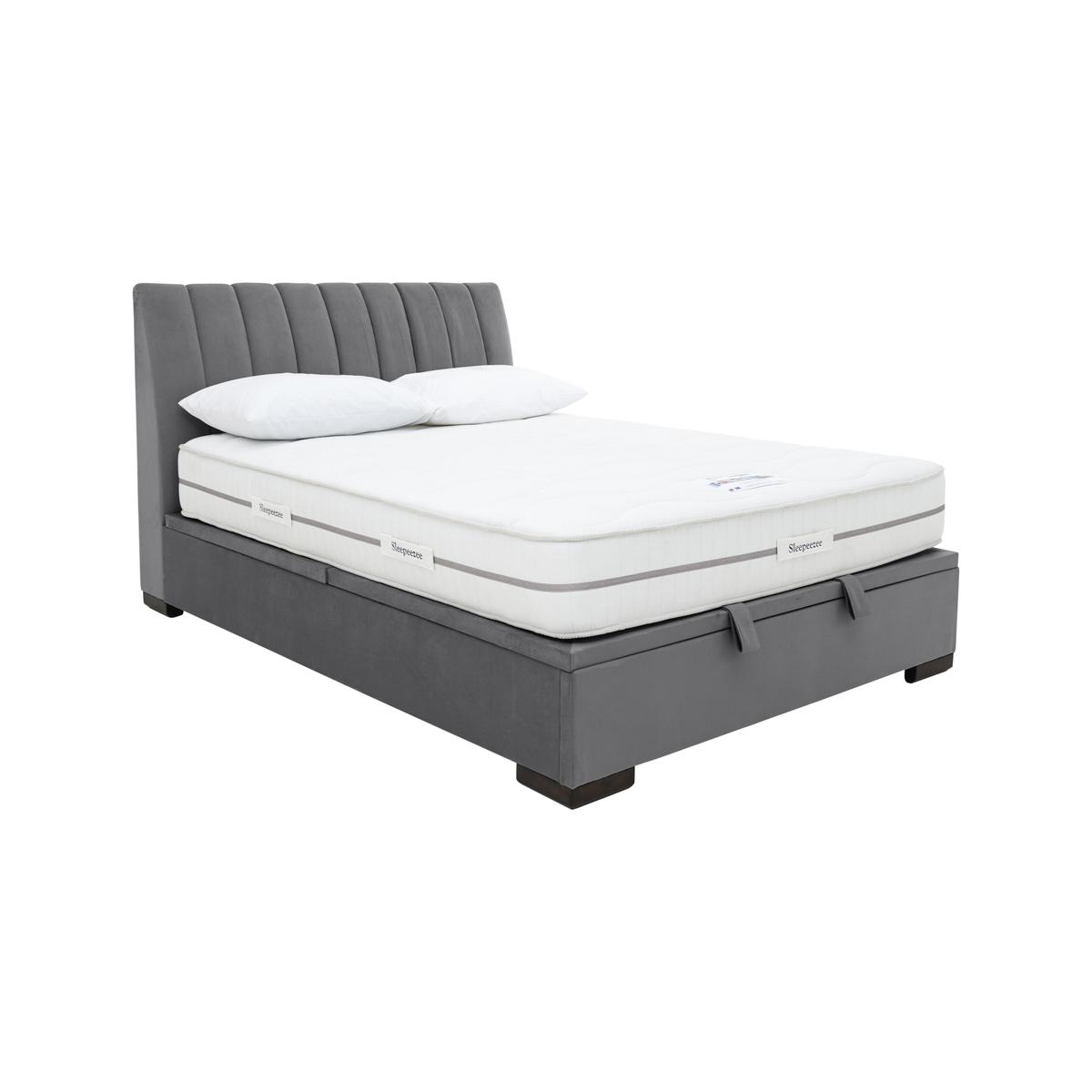 Gorgeous ottoman bed frame with luxurious padded headboard. Hydraulic-assisted lift system for easy access to the large storage compartment. Beautifully upholstered in a choice of two colours. Stylish and contemporary, the Cancun ottoman bed frame displays innovation inside and out. This fabulous ottoman bed comes with a luxurious headboard, thickly cushioned and with vertical fluting that gives it a panelled appearance. It’s a striking feature and yet, because the headboard is lower in height than many other headboards, this bed frame is also a great choice for a bedroom with reduced ceiling height. The platform-style base and headboard are beautifully upholstered in a sumptuous fabric that’s available in a choice of two colours. Hidden from view is another fabulous feature – the large under bed storage space. Easily accessed via a hydraulic-assisted lift system, this compartment is the perfect place for spare duvets and pillows or even, thanks to the sturdy floor base, heavier items like books and clothing. The base itself is suitable for any type of mattress up to 55 kg in weight, and is ventilated to ensure cool and comfortable sleep. The fabulous Cancun ottoman bed frame is available in double and king sizes. Headboard comes as one single piece. Mattress available separately
