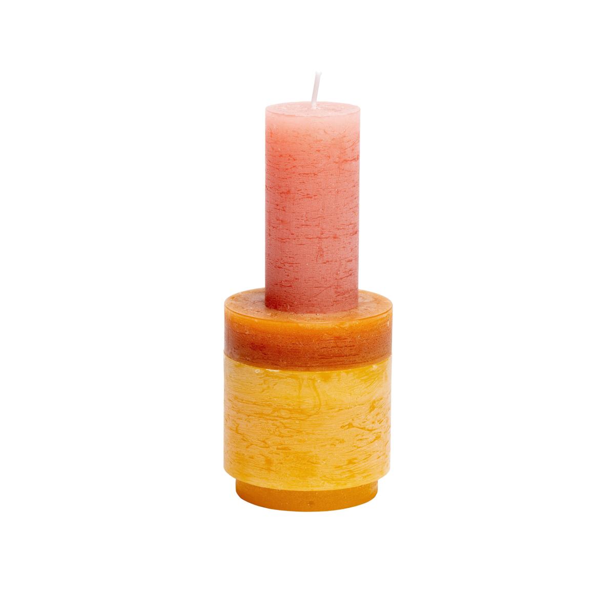 I really like the Candle Stack 02 for its simple yet bold design-perfect for adding a pop of colour and texture to a variety of interiors. It works well in minimalist spaces as a sculptural statement piece, or layered with other decorative items in eclectic or boho settings. Its stackable design not only makes it versatile in styling, but also practical for grouping in different arrangements. To enhance its visual appeal, try placing it on a neutral tray or alongside natural materials like wood and ceramics. Keep in mind, due to its stacked form, it's particularly effective when displayed at eye level or on a mantle to truly showcase its colour blocking and geometric simplicity.