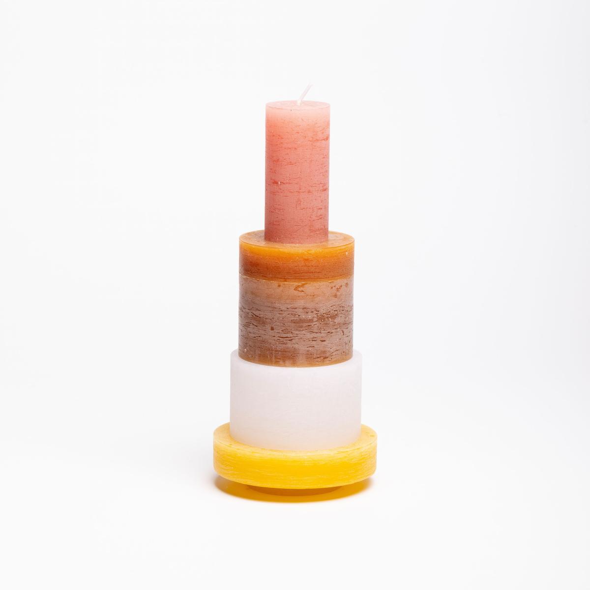 I love the candle stack because of its bold, sculptural presence and playful use of colour blocking, making it a statement piece that works well in both contemporary and minimalist interiors. Its stackable design allows for versatile styling-grouped on a side table, mantelpiece, or as a centrepiece, creating impact without clutter. The mix of tones complements neutral palettes but also adds a lively touch to more eclectic spaces. Practical tips include playing with height variations to add visual interest or combining with simple accessories to keep the focus on its colourful form. It’s perfect for adding warmth and a subtle pop of colour to any living room or dining area.