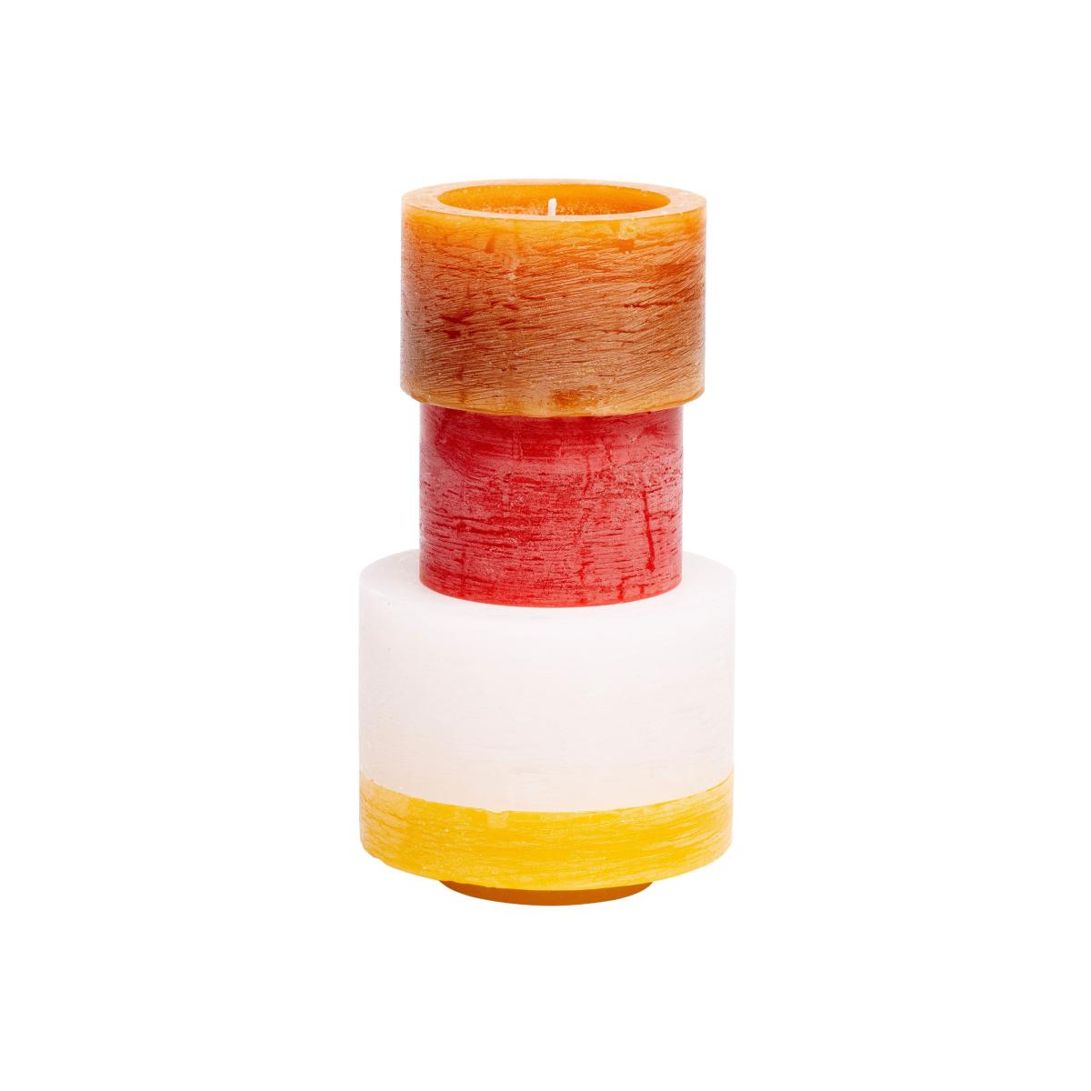 This candle stack makes a striking focal point thanks to its bold, colour-blocked design and versatile form. I love how it works well in both modern and eclectic interiors, adding a pop of colour and texture. It’s perfect for layered styling on coffee tables, mantels, or open shelving, especially when grouped with other decorative objects. Practical tips include using it as a centrepiece in a minimalist setting to inject personality, or mixing it with natural materials like wood and linen for a balanced, relaxed vibe. Its long burn time also makes it a functional choice for cosy evenings, creating warmth and atmosphere with ease.