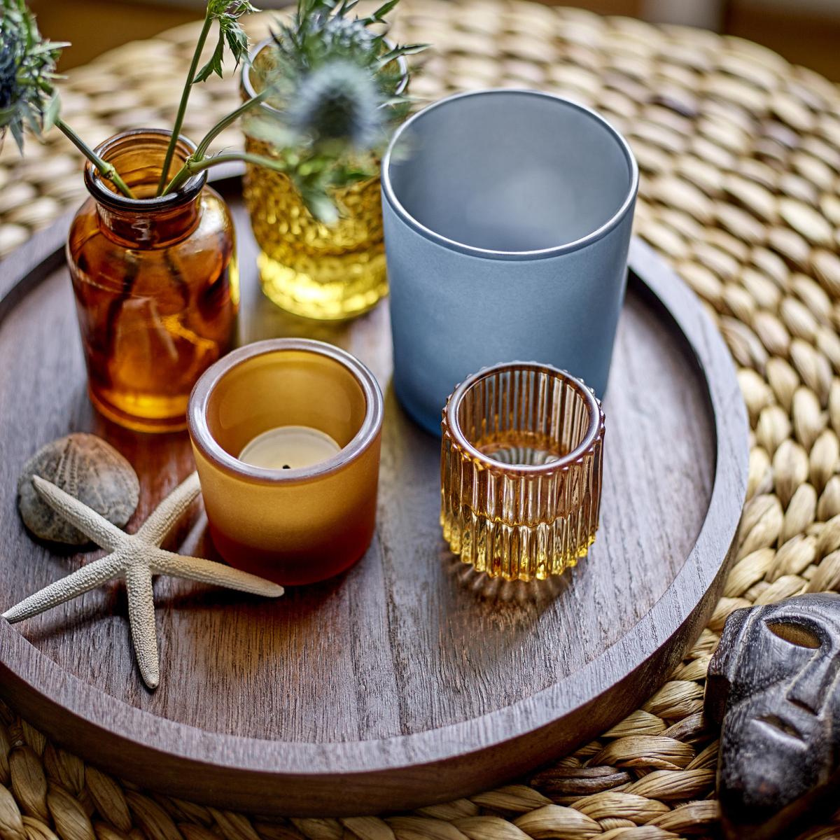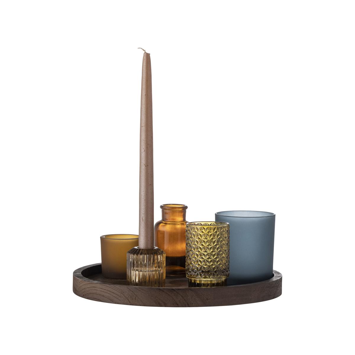 Candle holder Sanga glass wood / 5 candle holders & wooden tray Ø 30 cm - Bloomingville