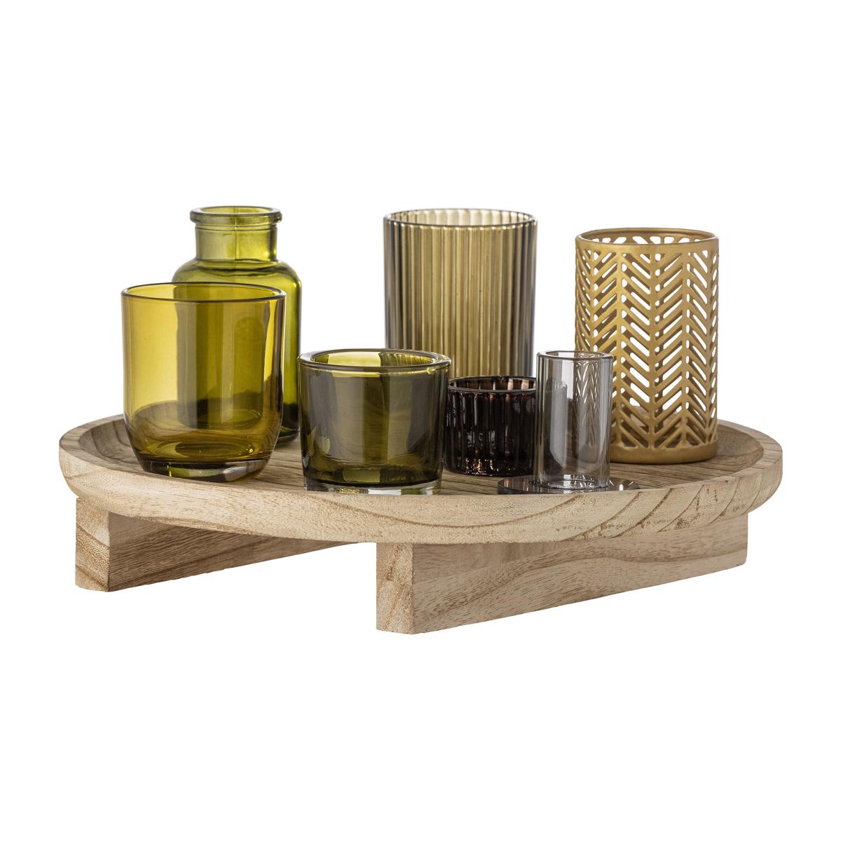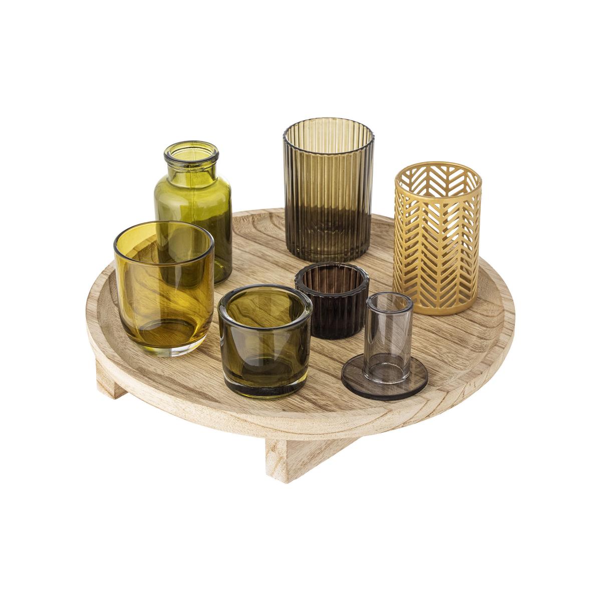 Candle holder Sanga glass wood / 7 candle holders & wooden tray Ø 32 cm - Bloomingville