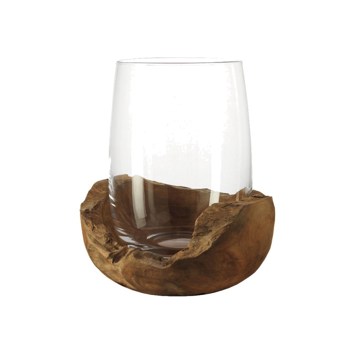 Candle holder - Teak base - H 27 cm by Leonardo Transparent/Natural wood