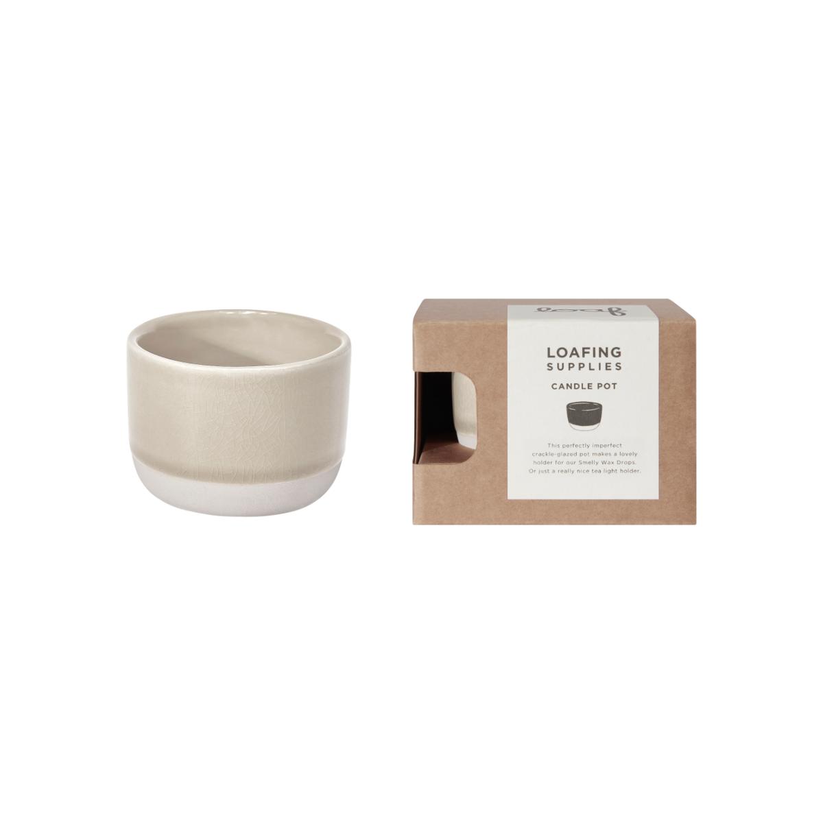 This perfectly imperfect crackle-glazed pot makes a lovely holder for our smelly wax drops. Or just a really nice tea light holder.