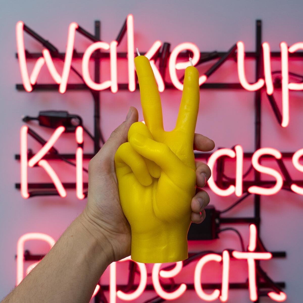 This candle is a real winner. Handmade, life-sized and realistically shaped, this candle is a playful addition to any home. Perfect for peace-loving hippies or sticking two fingers up in victory.