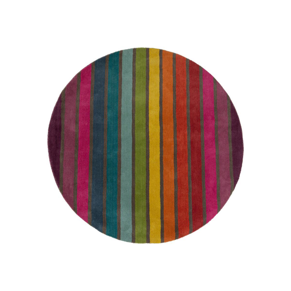 Vibrant, modern and packed with hand-carved detailing, Candy is made from 100% wool. With a statement design our Candy round rug will add warmth, texture and colour to any room. This is a dense hand-made rug. When opening, re-roll your rug pile out and leave in a warm room for 24 hours before putting in place, this will help to reduce wrinkles and curling from packing. Do not pull any loose threads, please cut them carefully with scissors to remove. Avoid prolonged exposure to direct sunlight as this may cause fading of the colour. Turn your rug regularly to ensure even wear and to reduce pressure marks from furniture. Wool fibres may shed when new and during use, this is a characteristic of this product and is not a defect and should reduce with normal use and regular vacuuming. Before using any cleaning products on your rug, test on an inconspicuous area first to ensure it does not affect the colour. Clean spills immediately by blotting with a clean dry white cloth - do not rub as this may stain the fibres. Vacuum your rug regularly to remove everyday dirt, we recommend the use of a suction type vacuum cleaner as a rotating vacuum brush can cause damage to the pile surface. We recommend the use of an anti-slip mat beneath your rug to prevent it from slipping and sliding out of place. Latex is used on the back of this rug. Please do not leave babies or young children unsupervised on this rug.