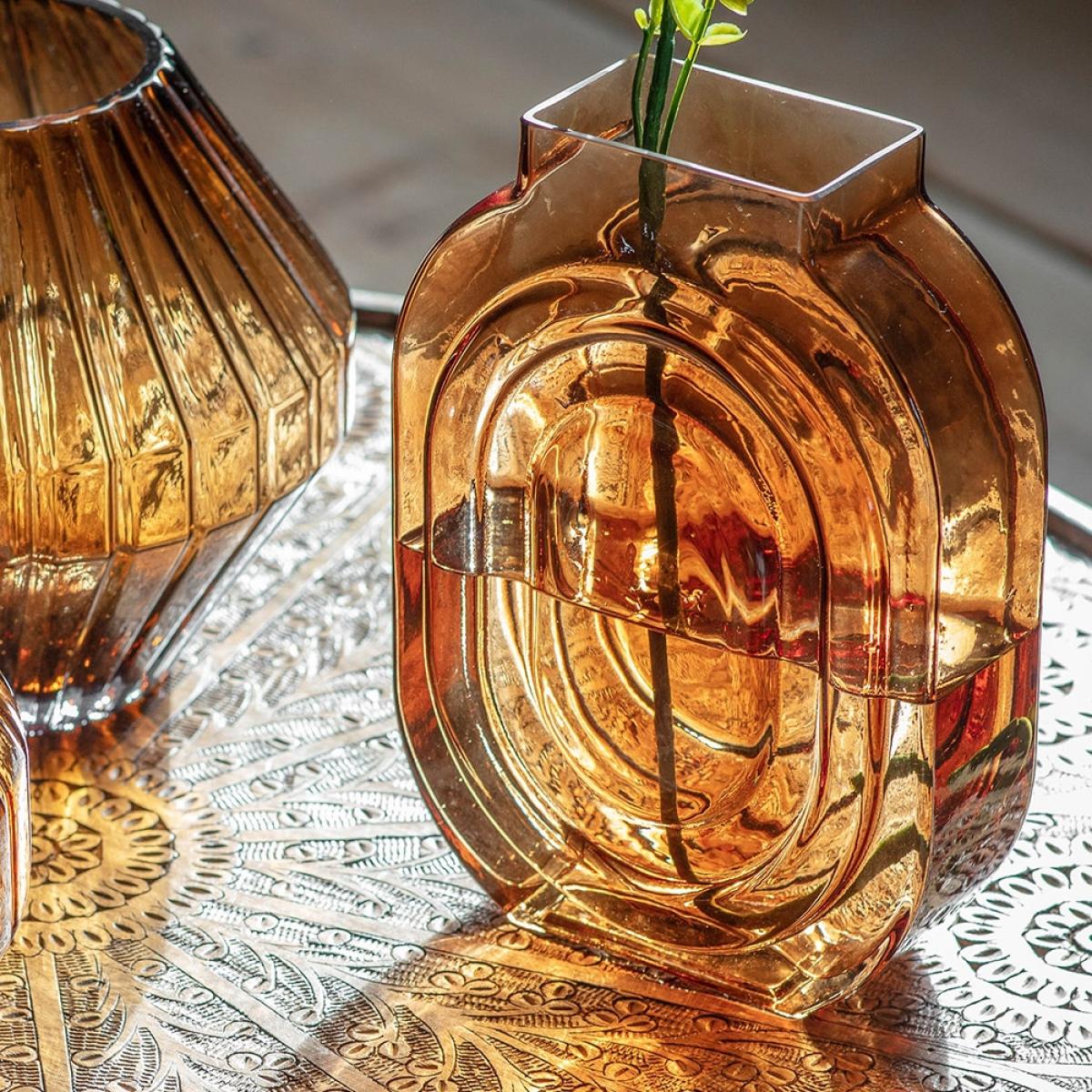 The autumnal toned clear Cane Glass Vase will add a bright pop of colour to your side tables! Featuring a ripple design, the blown glass lets light pass through to create gorgeous patterns and colours in your chosen room. Position in the window to enjoy the full effect! Display fresh blooms and stems or try dried or faux flowers for a completely different look. Available in a selection of other tones and shapes, splash out on all three glass vases. You can never have enough flowers in your life!.