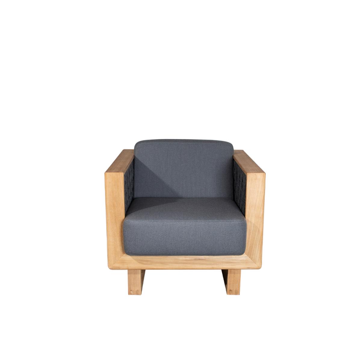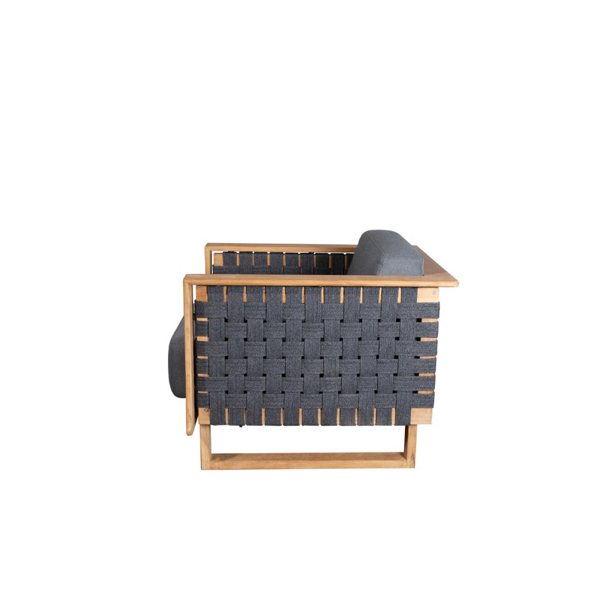 I love this lounge chair for its smart combination of natural teak and contemporary charcoal fabric, which makes it versatile for both modern and rustic garden settings. Its sturdy yet comfortable design works well in outdoor lounges, but can also be paired with a neutral-toned indoor sunroom to add warmth and texture. Styling tips include layering it with cosy throws or cushions in muted tones or earthy hues to enhance its relaxed vibe. It pairs seamlessly with minimalist furniture or botanical-inspired decor, making it a practical and stylish choice that can elevate any outdoor or indoor space.
