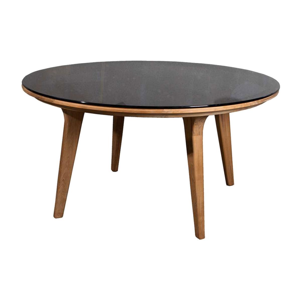 Design. T. He Cane-line Aspect Outdoor Round Dining Table oozes. Class and elegance. The warm inviting glow of the teak wood frame. Contrasts. Perfectly in different ways with the four choices of tabletops. The neutral. Ceramic tops in fossil grey and fossil black create an earthy, textured look and the. Smokey black glass top gives a sleek, glossy finish. Both materials provide a strikingly impressive outdoor setting. , allowing you and your loved ones to congregate in style.