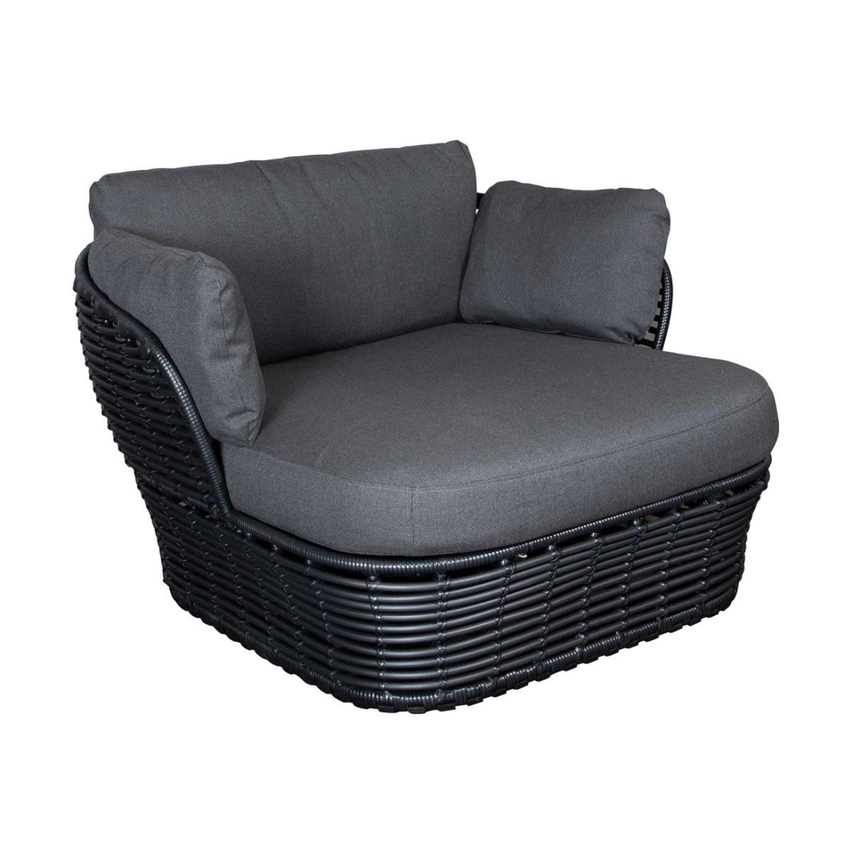 Cane-Line Basket Garden Lounge Chair in Graphite with Grey Fabric