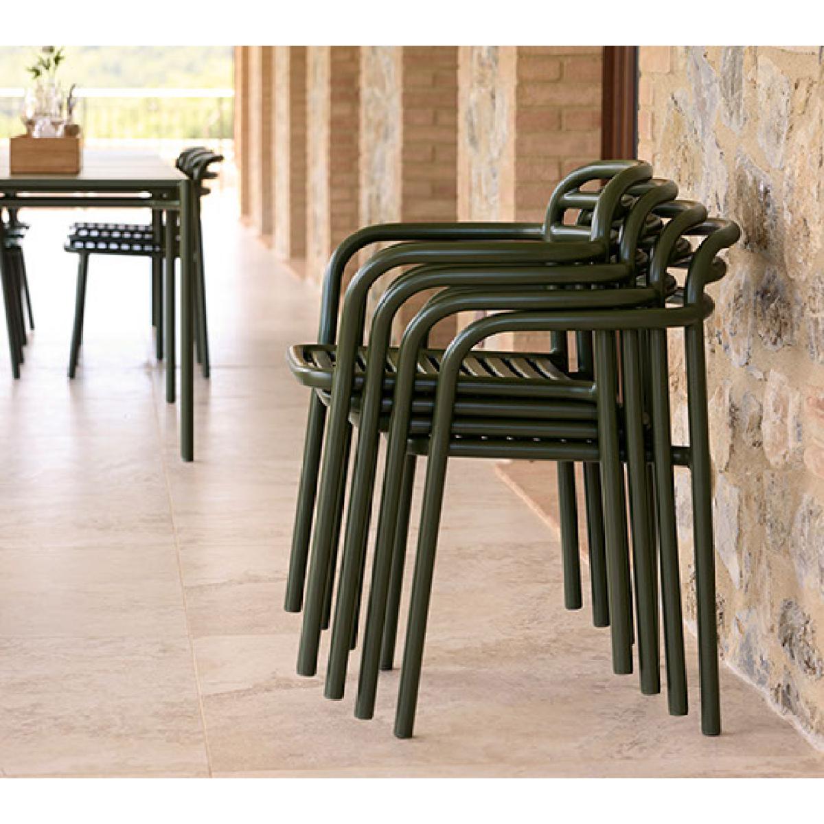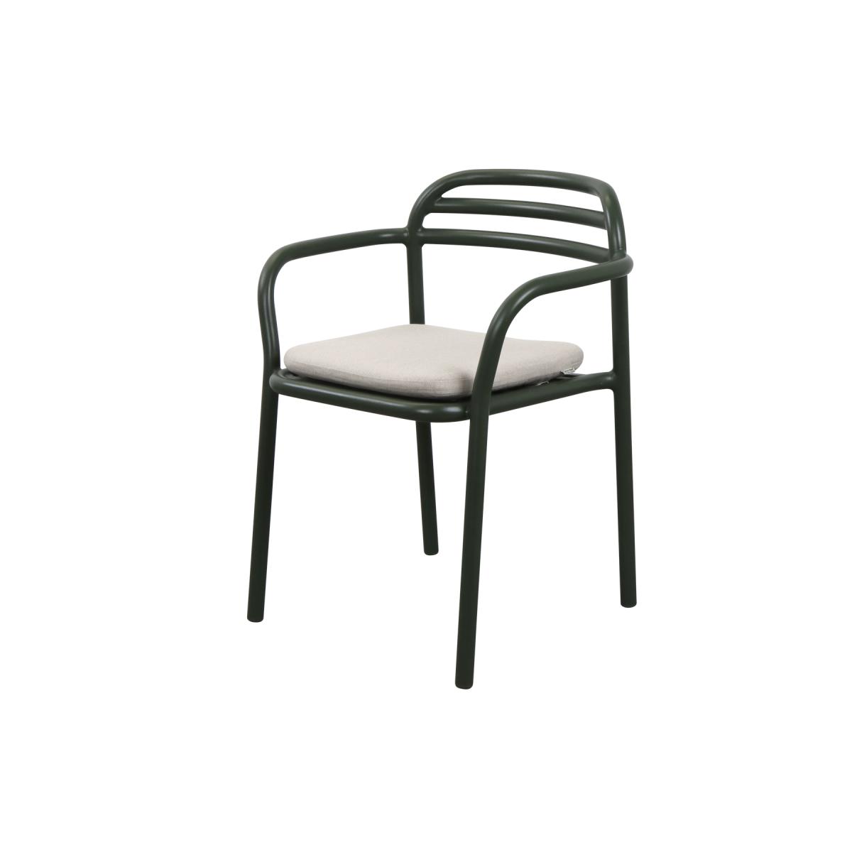 I really like this garden chair because its dark green hue offers a sleek, contemporary look that works well in a variety of outdoor settings. It's versatile enough to be styled with modern, minimalist gardens or paired with softer textiles for a more relaxed, cosy feel. My tip would be to contrast it with neutral or natural-toned cushions and throws to soften its slightly industrial frame. It also pairs beautifully with a natural wood or stone dining table, making it ideal for outdoor dining spaces. The durable design means you can use it year-round, and adding a colourful cushion can easily refresh the look for each season.