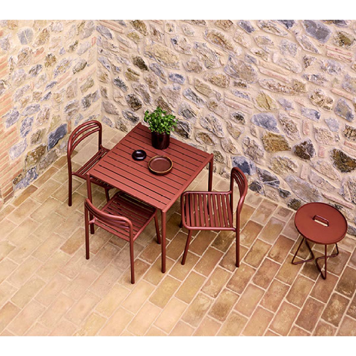I really like this table for its clean, modern aesthetic and versatile size, making it perfect for smaller outdoor spaces. The desert red top adds a warm pop of colour that can energise your garden or balcony, while the simple frame keeps the look sleek and unobtrusive. It works well in contemporary, coastal, or even boho-inspired exteriors. For styling tips, pair it with matching or complementary coloured chairs to create a cohesive look, and add textured outdoor cushions for comfort. Practical advice includes using this table as both a cosy dining spot and a charming side surface, depending on your needs, making it a multi-functional piece that combines style and practicality effortlessly.