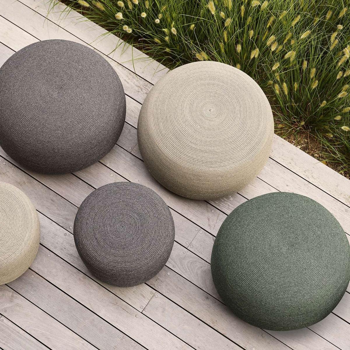 Design. Kick up your feet. In your outdoor space. On the beautiful Cane-line Circle Small Footstool, Taupe. Designed with the Cane-line. QuickDry. And Airflow. System,. This modern and stylish footstool is also extremely durable. , multifunctional and. Practical. The perfect asset to your garden area all year round, the robust shape is also unaffected by strong winds and will stay firmly on the ground.