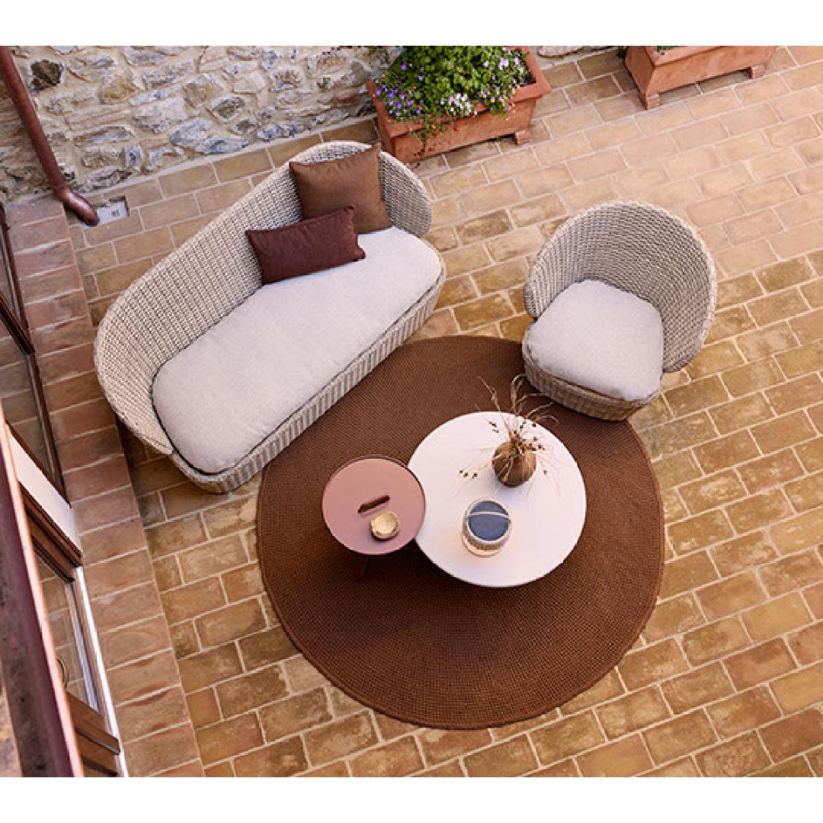 This chair has a relaxed, contemporary vibe that works well both indoors and outdoors. I love its lightweight design, making it easy to shift between a sunroom, balcony, or garden patio. The flat weave finish adds texture and a subtle natural tone that pairs effortlessly with both modern and boho interiors, especially when styled with neutral cushions or greenery. For practical styling, consider layering with outdoor cushions in muted or earthy colours to enhance comfort and visual interest. It’s also versatile enough to be paired with round tables, side tables, or even as a standalone statement piece in a corner. Overall, it’s a stylish yet functional addition that can transition seamlessly from outdoor lounging to relaxed indoor spaces.