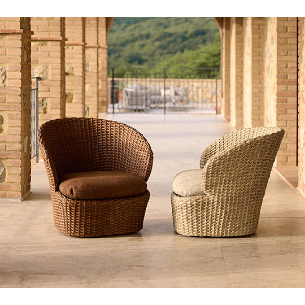 I love the Cane-line Coast lounge chair swivel for its sleek, contemporary look combined with practical durability. Its umber brown flat weave lends itself well to both modern and rustic garden settings, bringing a warm, natural tone that pairs effortlessly with greenery or neutral outdoor textiles. As a stylist, I recommend counterbalancing its robust appearance with soft cushions in muted tones or patterned fabrics to add comfort and visual interest. This chair works beautifully in alfresco lounges or covered patios, especially when paired with low-profile tables and layered lighting for versatile outdoor living. Its swivel feature adds a functional touch, making it perfect for relaxed, social moments in the garden.
