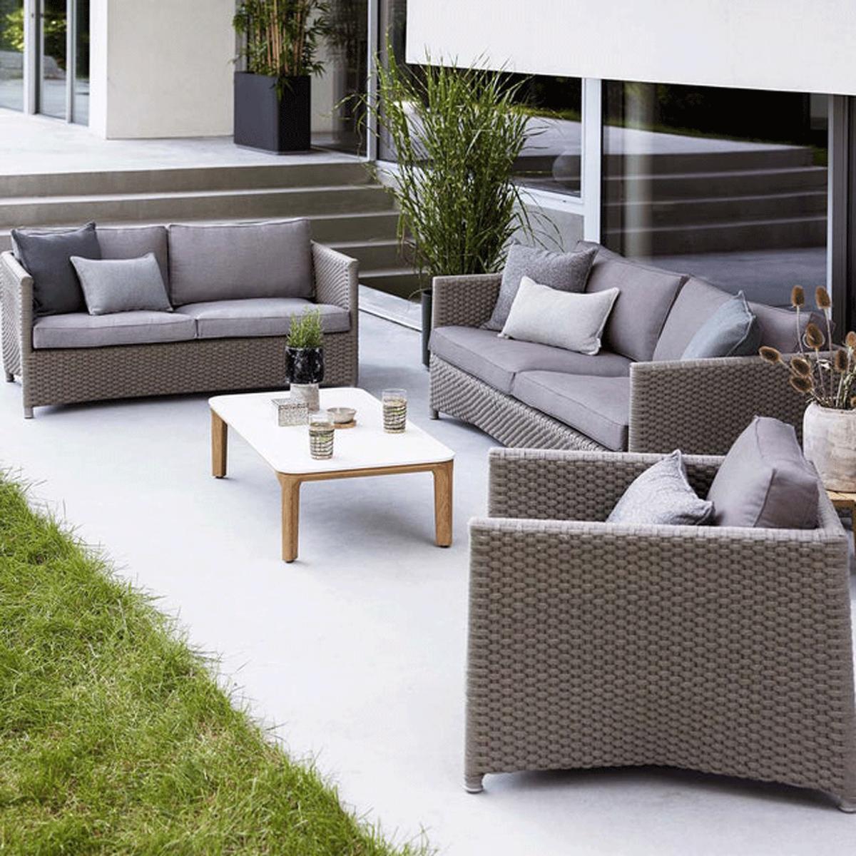 I love the Cane Line Diamond 3 Seater in neutrals because it offers a sleek, modern look that works well in contemporary and minimalist outdoor spaces. Its neutral tone makes it versatile, allowing it to complement a range of colour schemes and accessories. This set is practical for both garden and patio settings, providing comfort and durability. When styling, consider layering with textured cushions or throws in subtle colours or natural shades to add warmth and personality. Pair it with a simple wooden or rattan coffee table, as shown, to create a relaxed, inviting area perfect for outdoor entertaining or lounging. Its understated elegance means it can be dressed up with statement lighting or kept understated for a clean, sophisticated vibe.